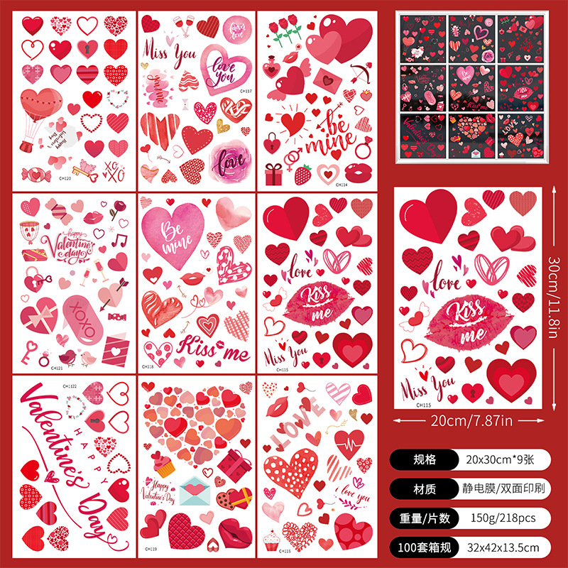 Jujian 크로스 보더 아마존 발렌타인 데이 정전기 스티커 창 유리 스티커 냉장고 자석스토어 가기