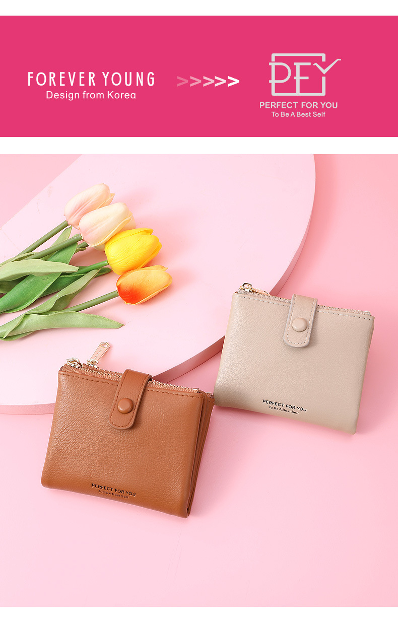 국경 간 Wichen 지갑 여성용 짧은 지갑 간단한 지갑 PU 동전 지갑 카드 가방 유행 지퍼 클러치 백스토어 가기