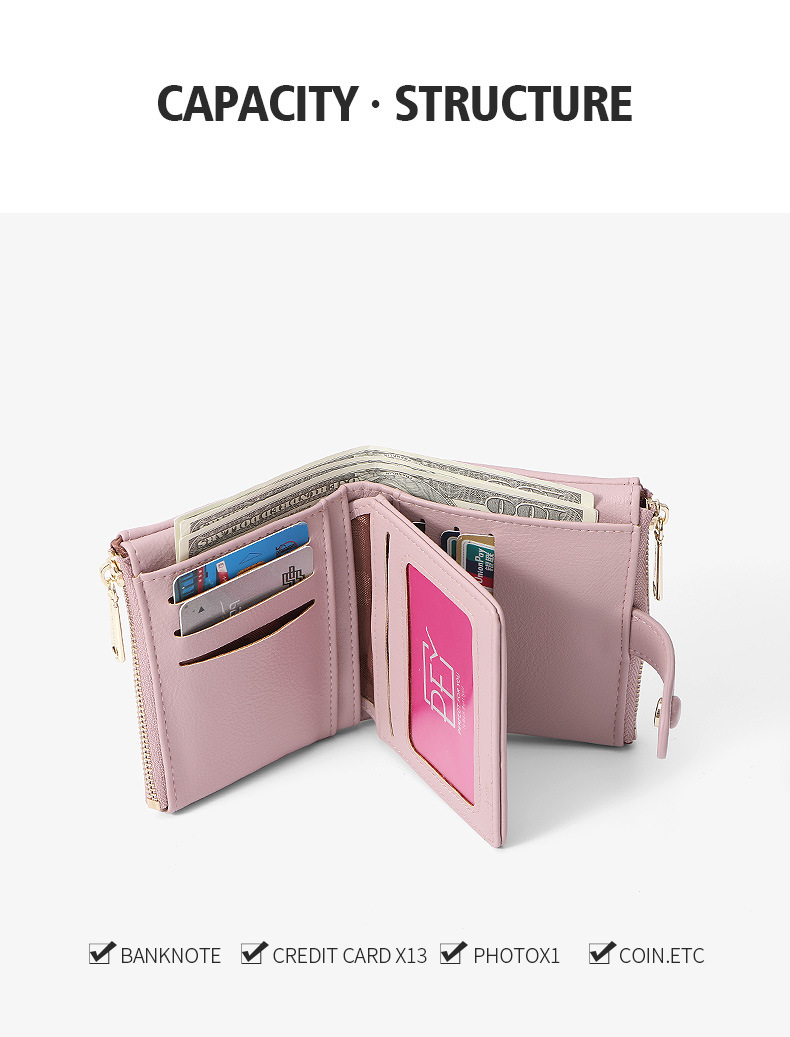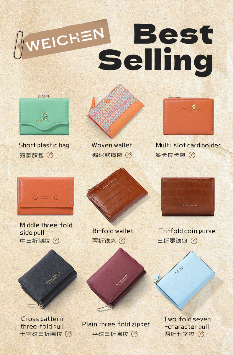 국경 간 Wichen 지갑 여성용 짧은 지갑 간단한 지갑 PU 동전 지갑 카드 가방 유행 지퍼 클러치 백