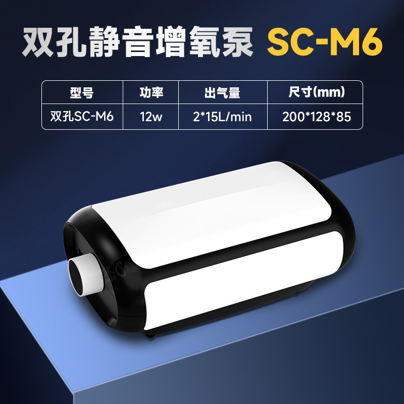• M6 이중 구멍 조절 가능한 초저소음 산소 펌프 12W