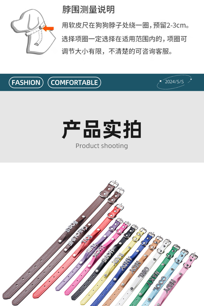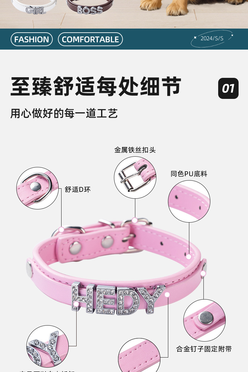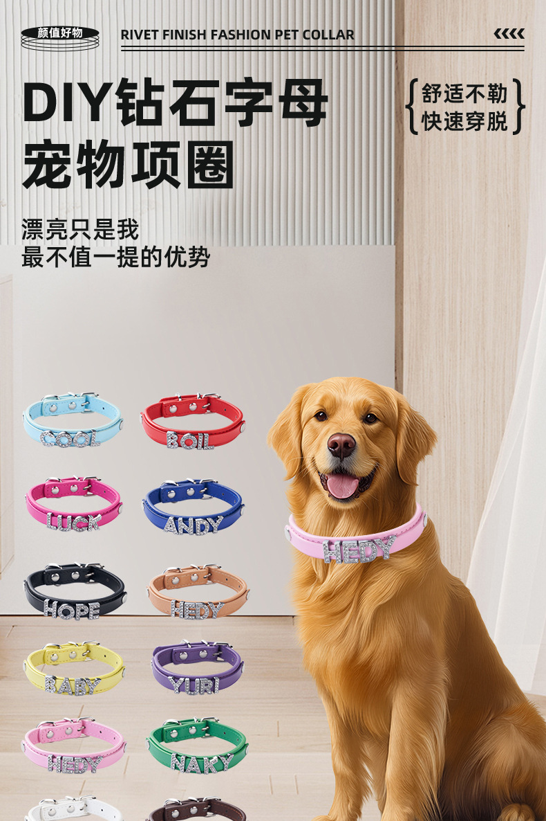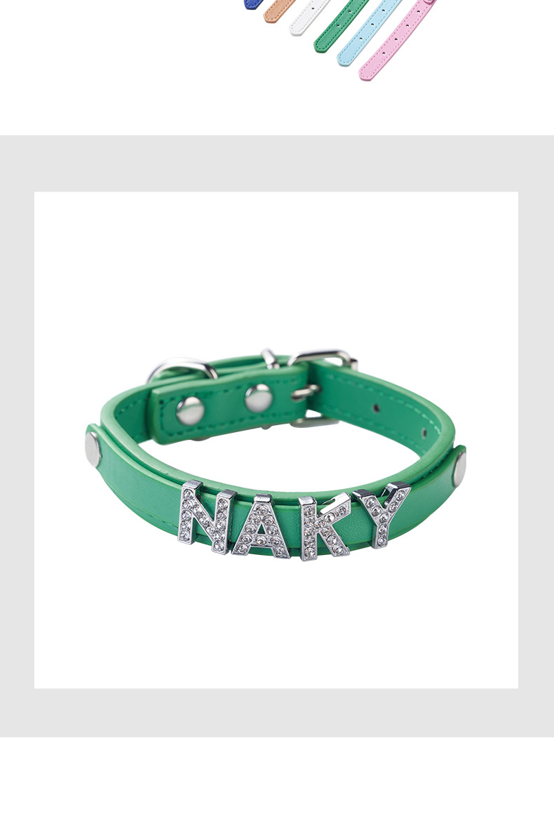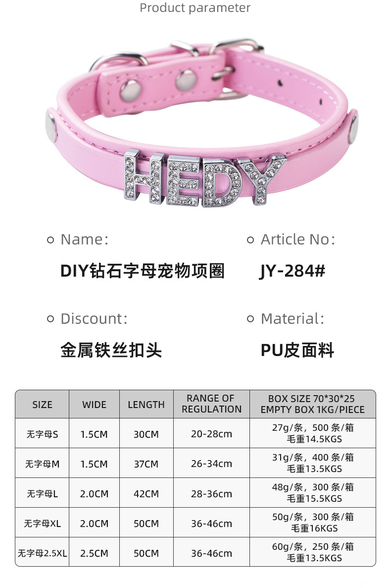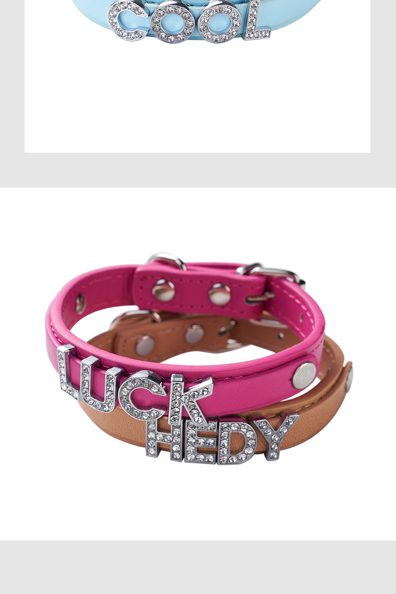 애완동물 목걸이 PU 가죽 리드줄 고양이 목걸이 발광 목걸이 글자 다이아몬드 목걸이 강아지 용품 도매스토어 가기