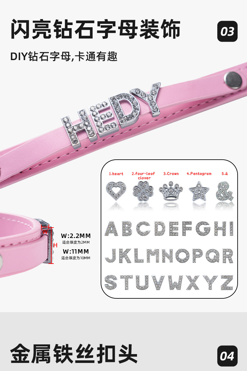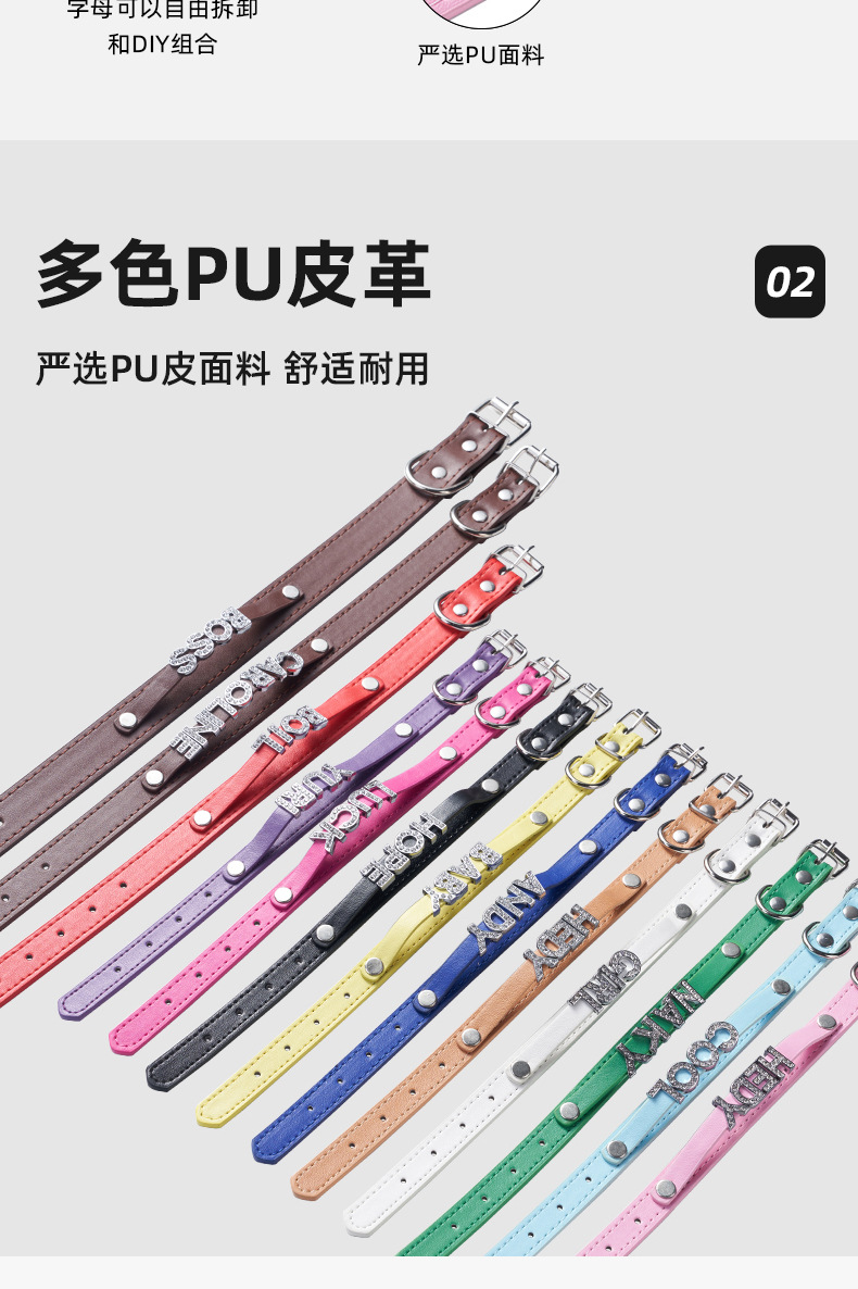 애완동물 목걸이 PU 가죽 리드줄 고양이 목걸이 발광 목걸이 글자 다이아몬드 목걸이 강아지 용품 도매