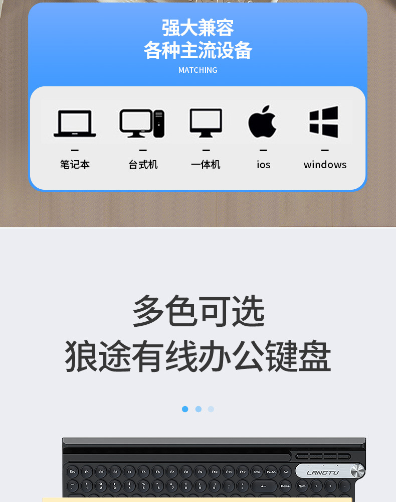 狼途L3L4电脑办公无线键盘 机械手感静音防水朋克风有线电池键盘