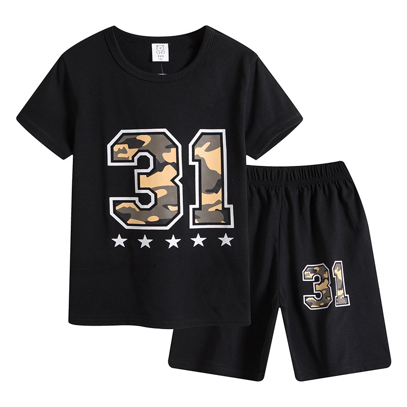 큰 어린이 세트 세대 6-12 세 컬러 매칭 캐주얼 학생 소년과 소녀 반바지 세트 어린이 의류 도매스토어 가기