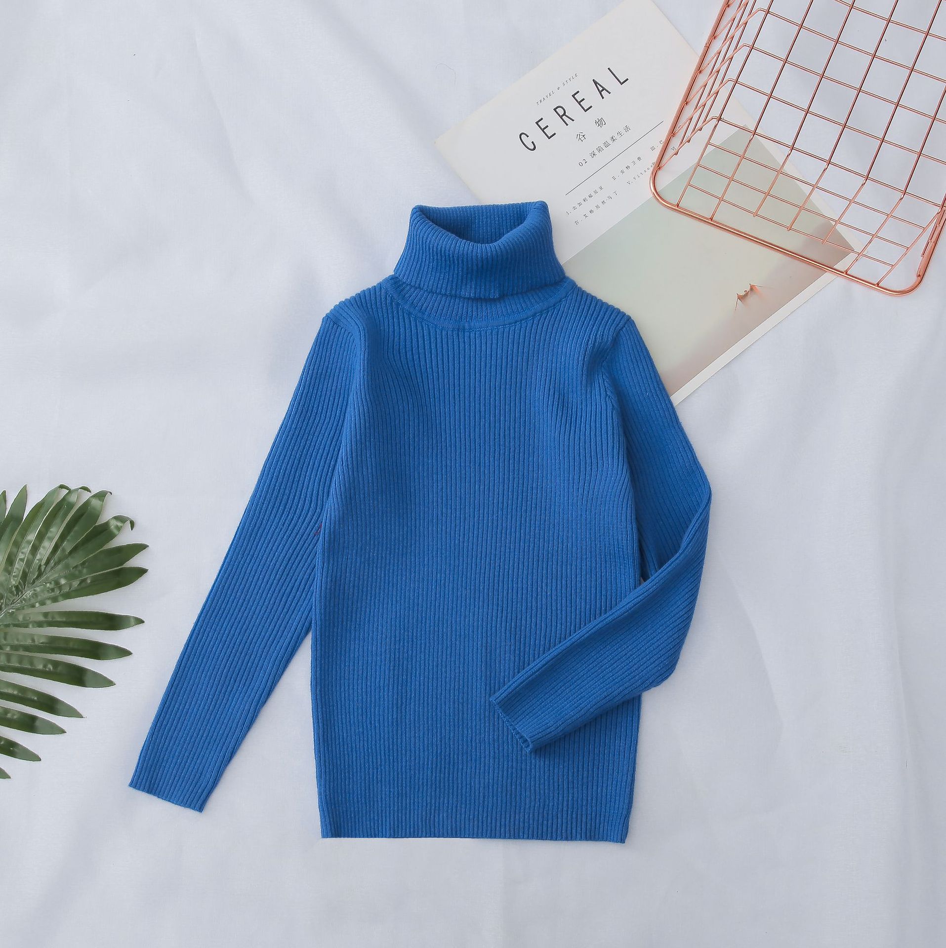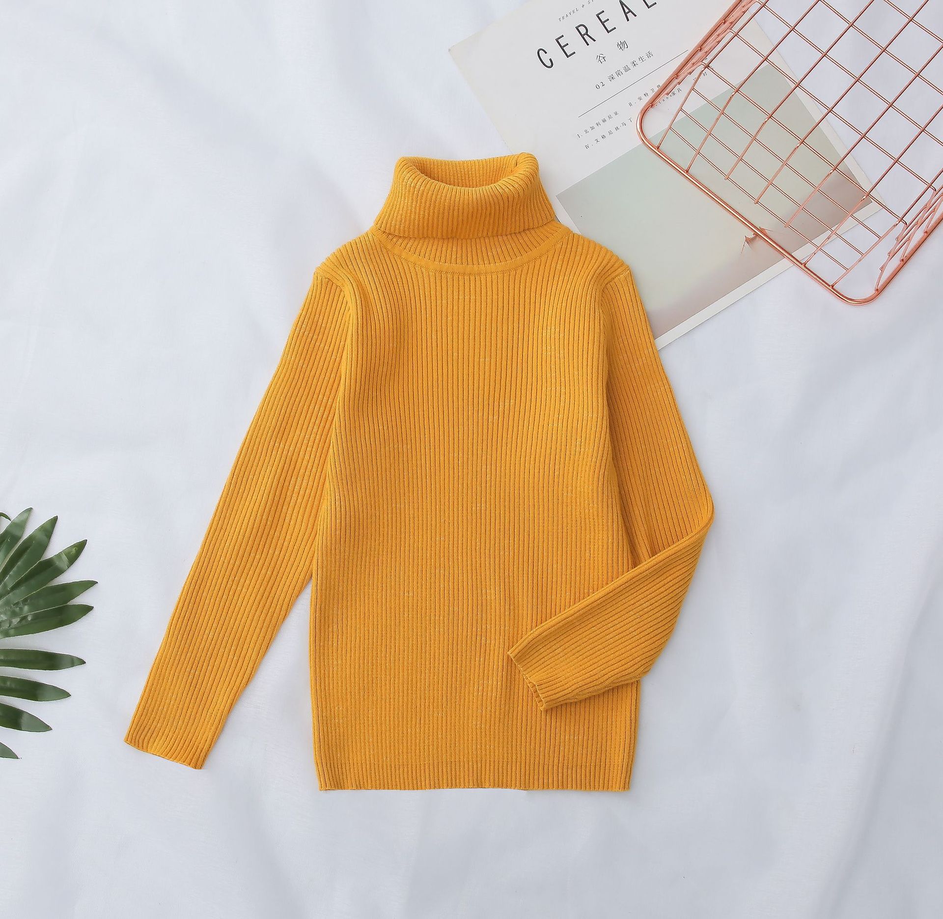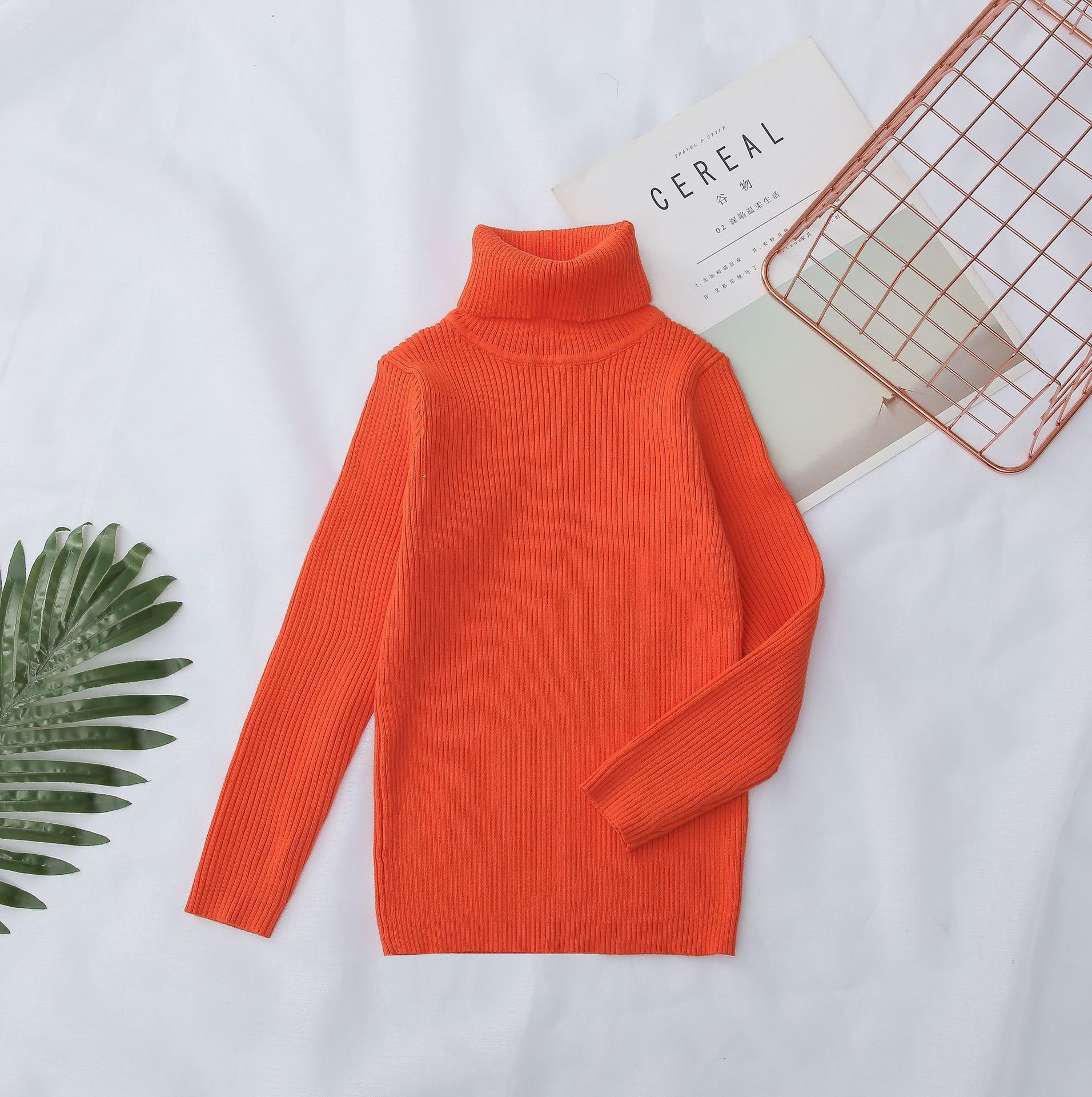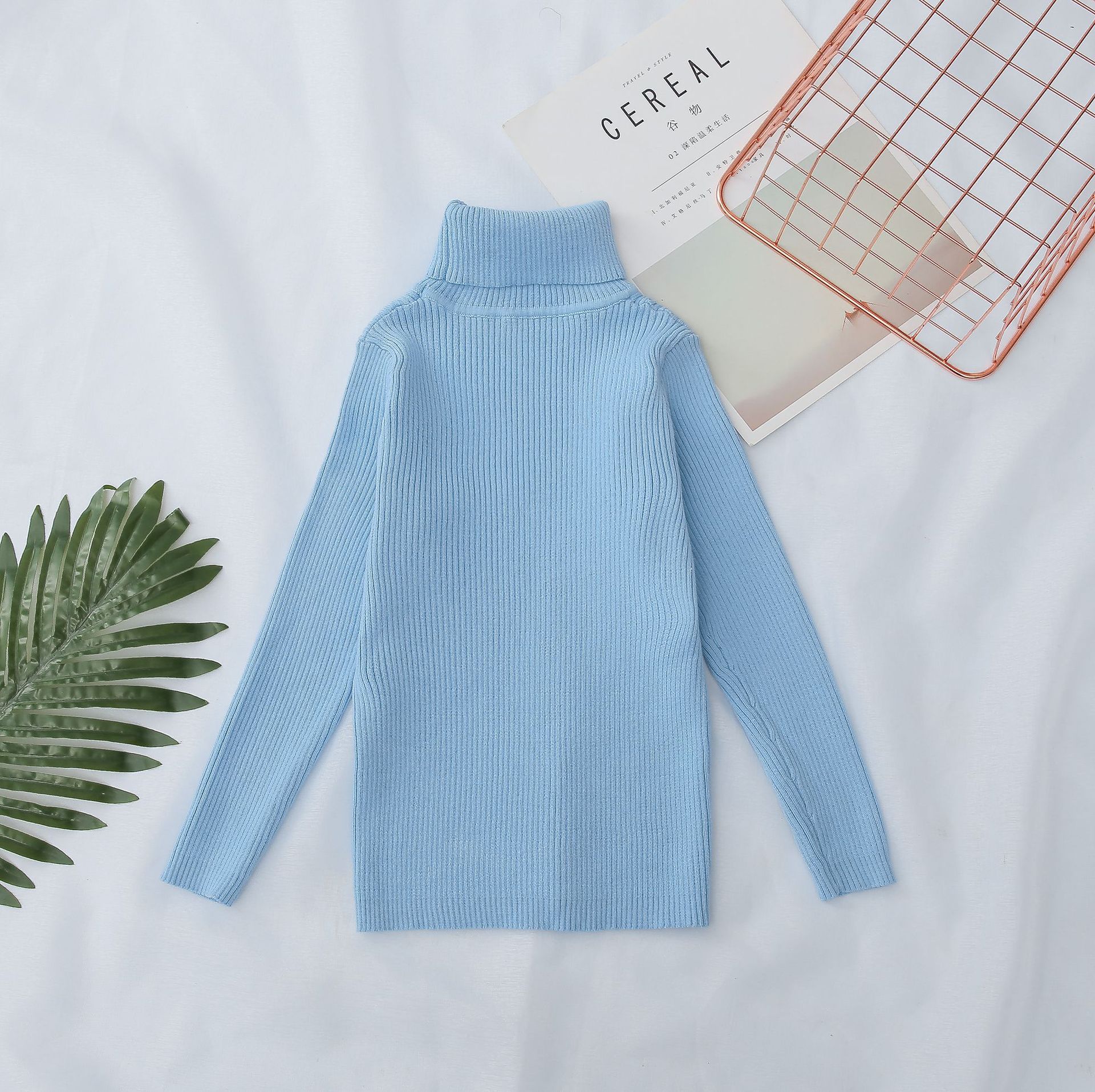 2023 패션 한국 단색 가을과 겨울 캐주얼 패션 어린이를위한 니트 하이 넥 코튼 캔디 컬러베이스 스웨터스토어 가기
