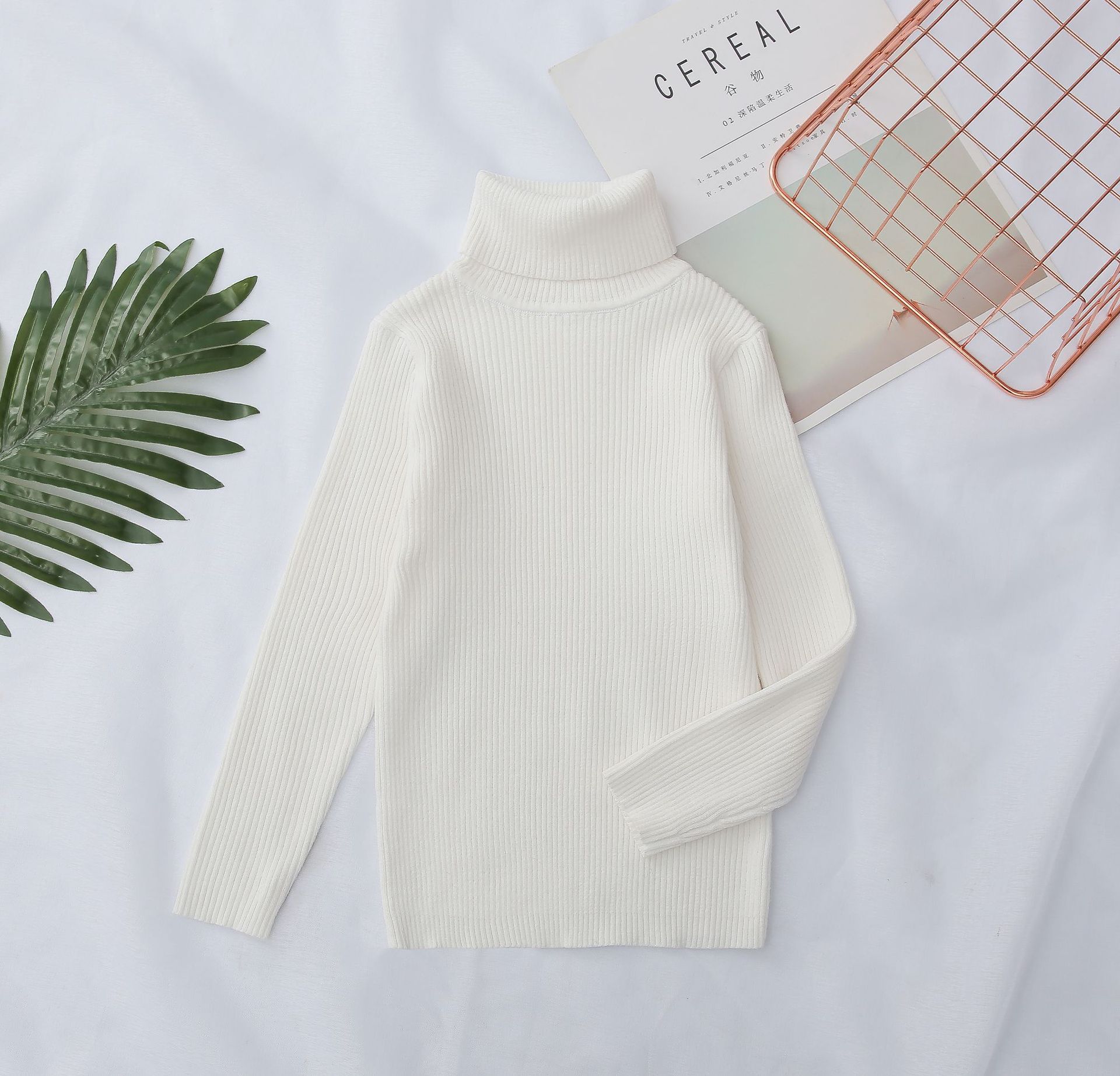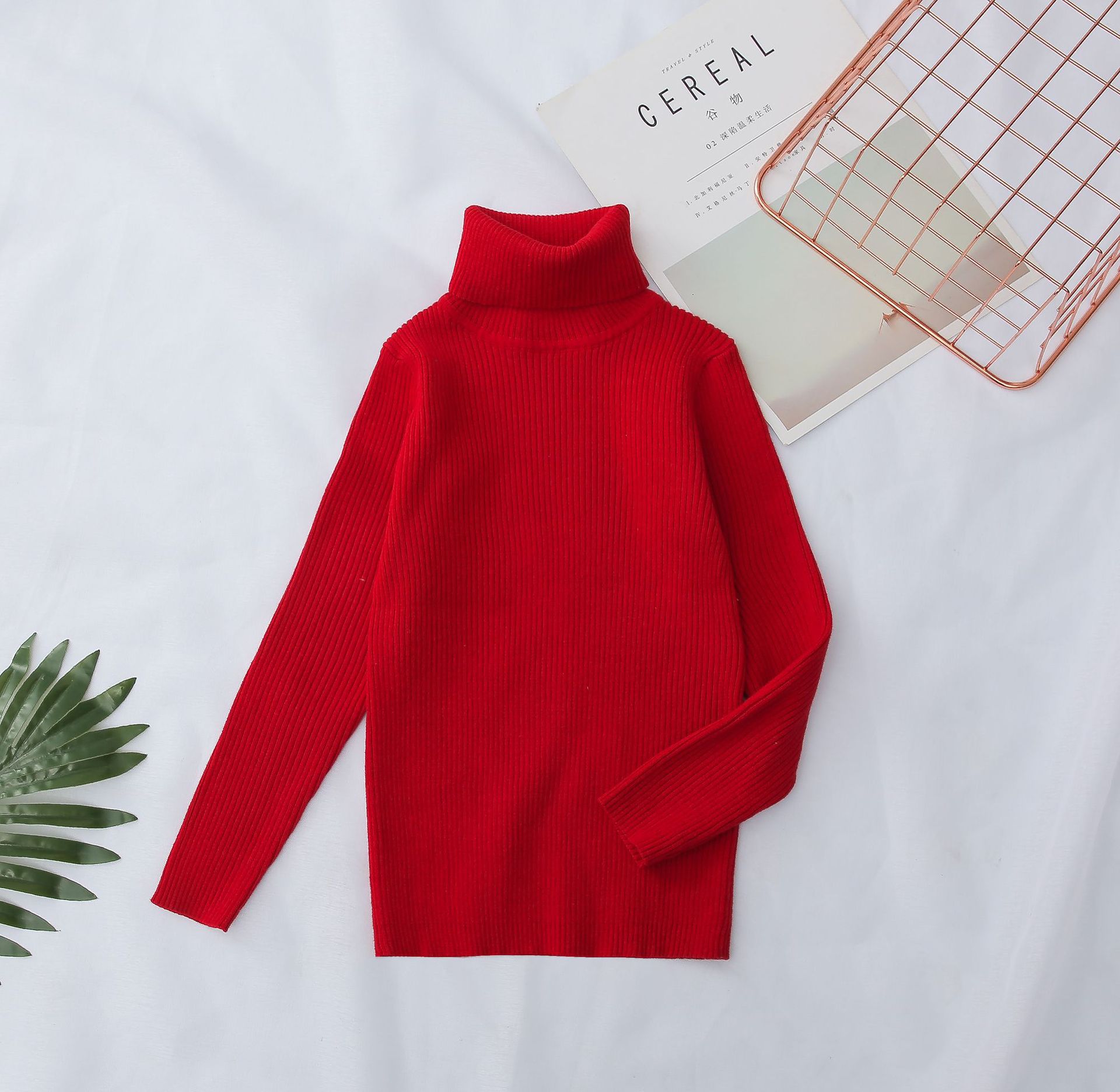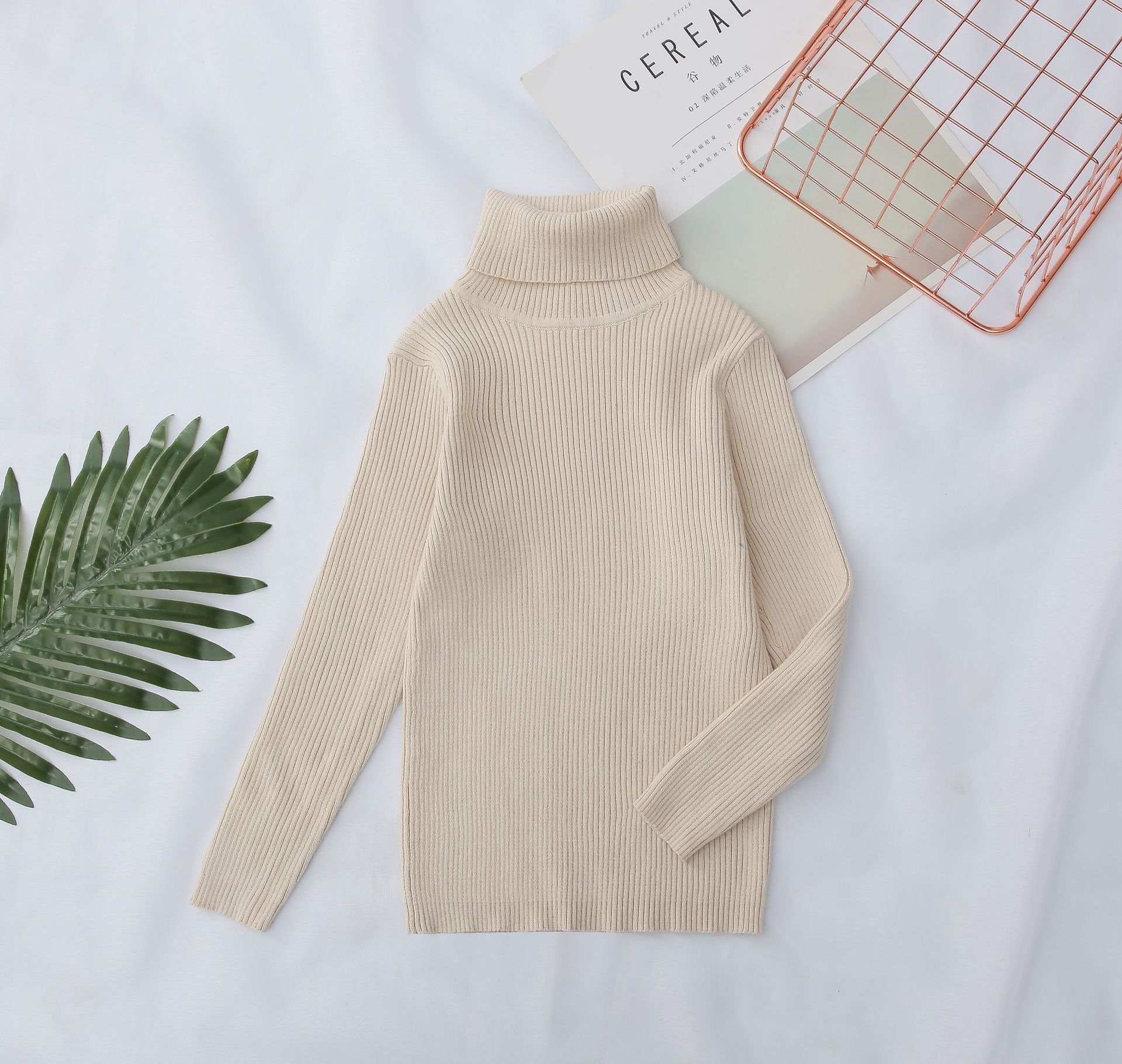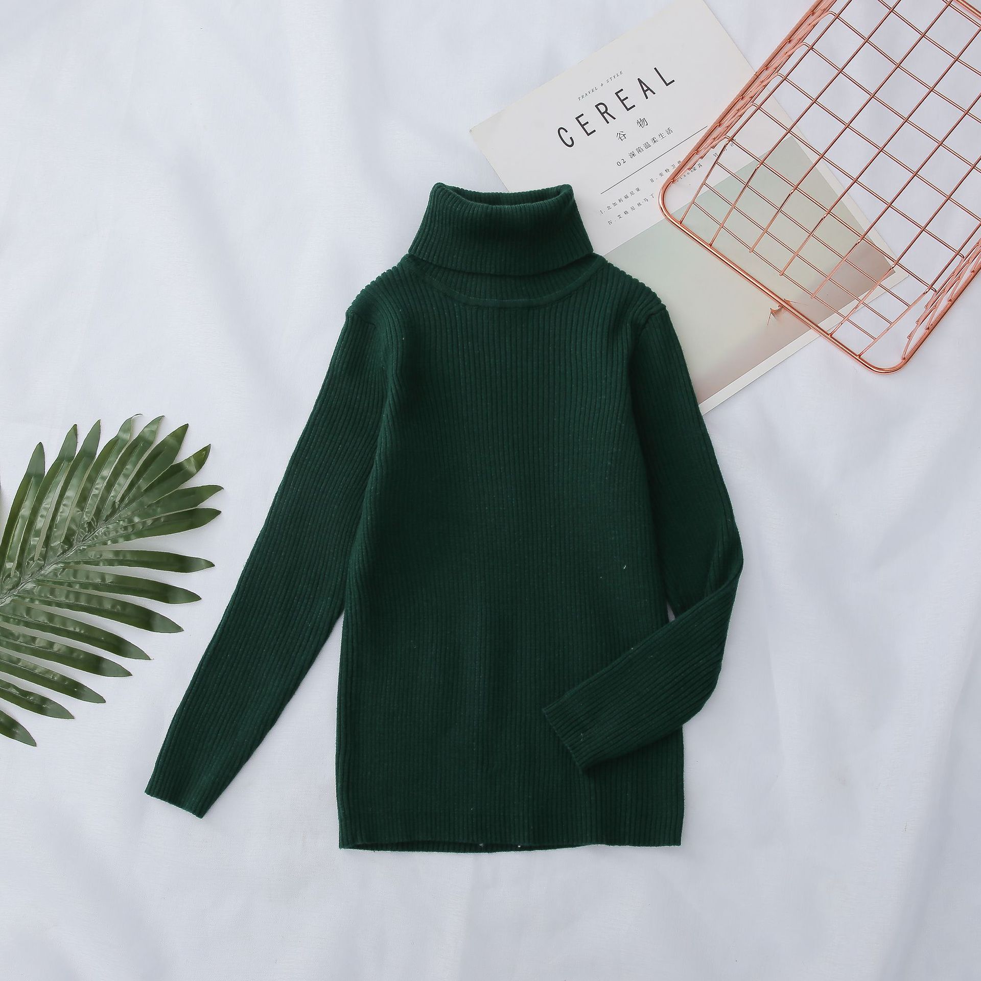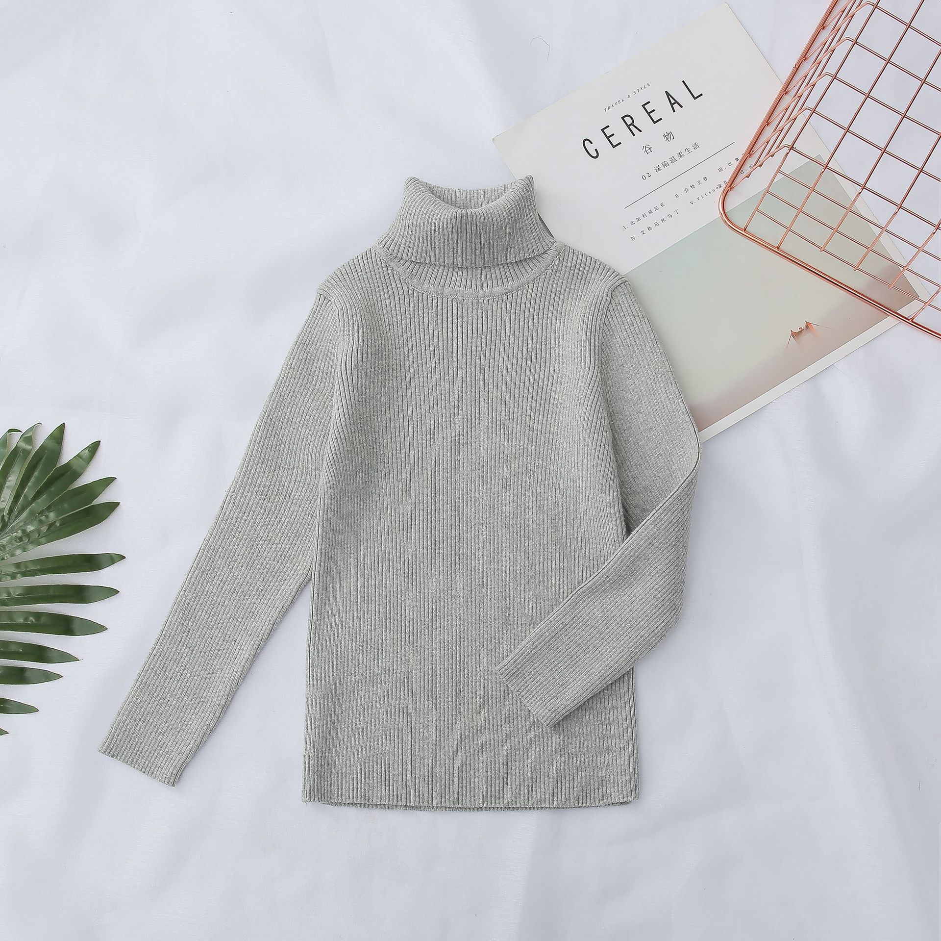 2023 패션 한국 단색 가을과 겨울 캐주얼 패션 어린이를위한 니트 하이 넥 코튼 캔디 컬러베이스 스웨터스토어 가기