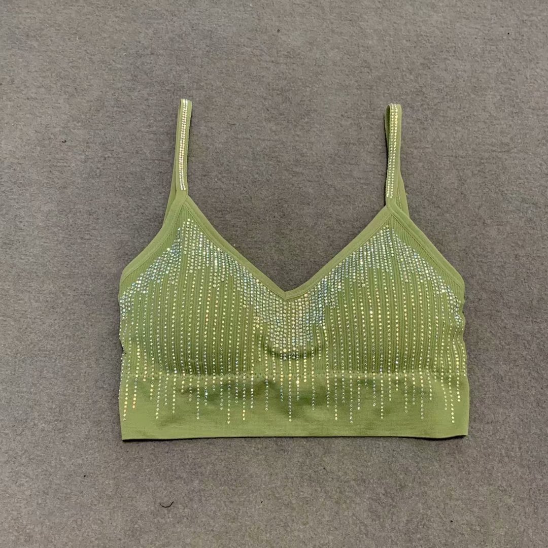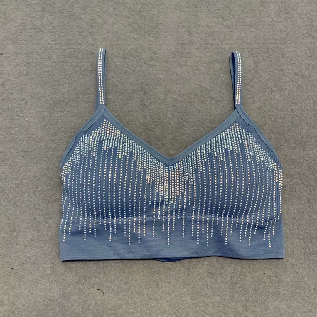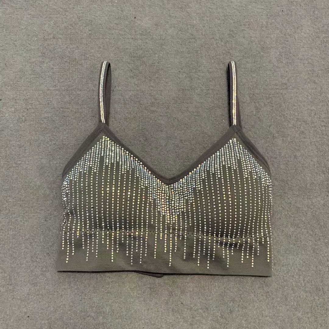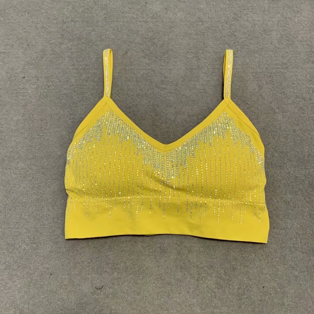 487 봄과 여름 신상품 다이아몬드 장식품 아름다운 등 짧은 작은 V-넥 얇은 어깨 끈 여성 단색 작은 조끼 가슴 포장스토어 가기