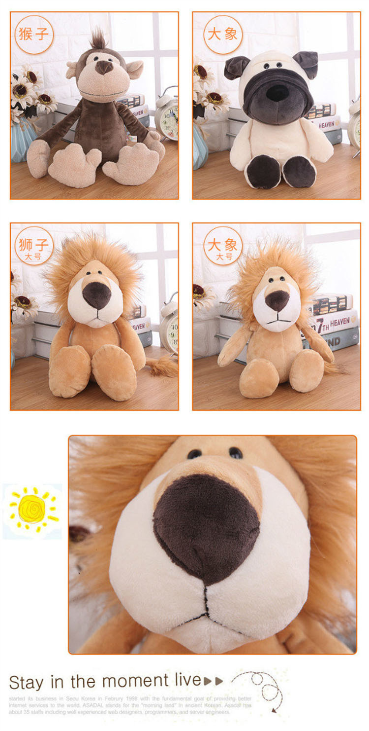 귀여운 동물 인형 사자 호랑이 코끼리 인형 장난감 봉제 인형 로고 인쇄 선물 도매스토어 가기