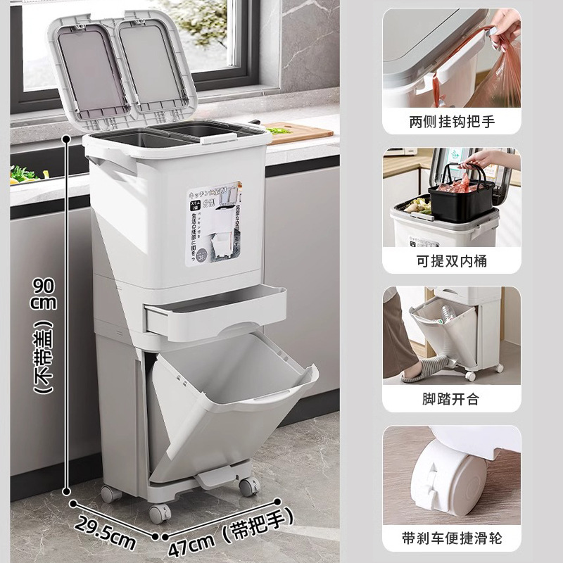 주방 쓰레기통 가정용 대형 2 층 통합 냄새 방지 2 층 주방 쓰레기 건식 및 습식 분리 일본식스토어 가기
