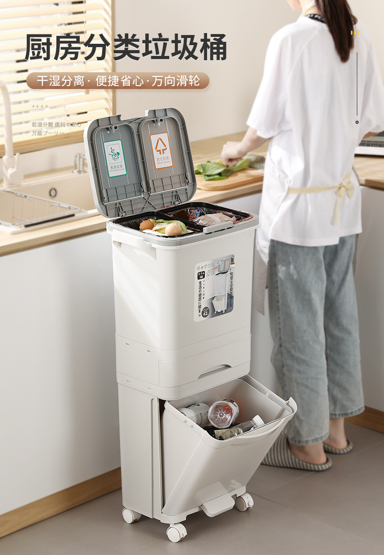 주방 쓰레기통 가정용 대형 2 층 통합 냄새 방지 2 층 주방 쓰레기 건식 및 습식 분리 일본식