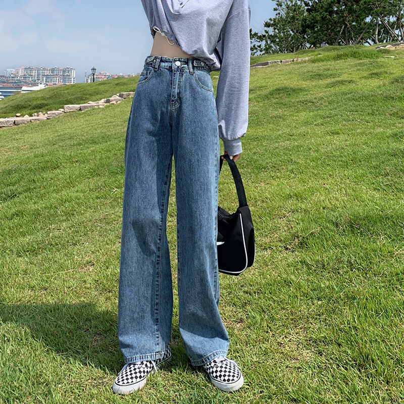 청바지 여성용 하이 웨이스트 슬림 와이드 레그 팬츠 2021 New Hyun-a 같은 스타일 걸레 바지 조절 가능한 허리 바지