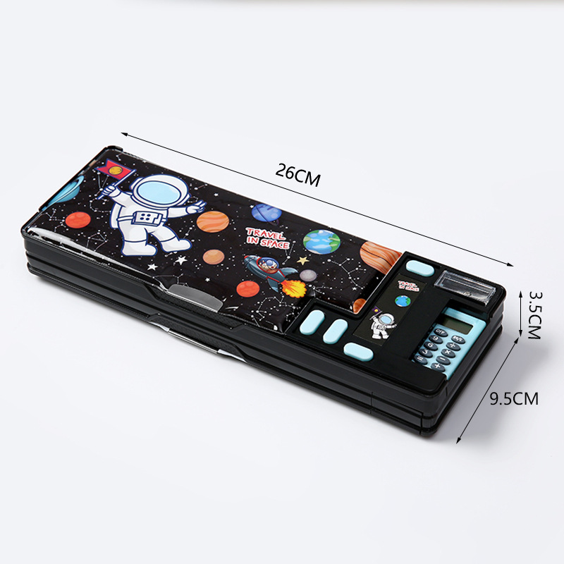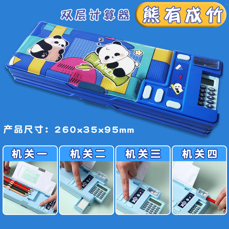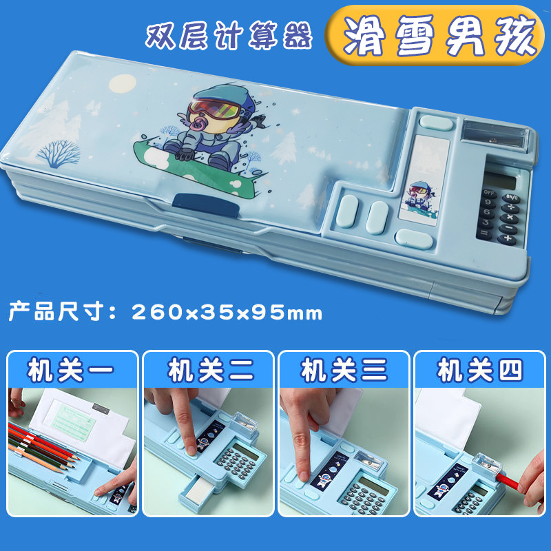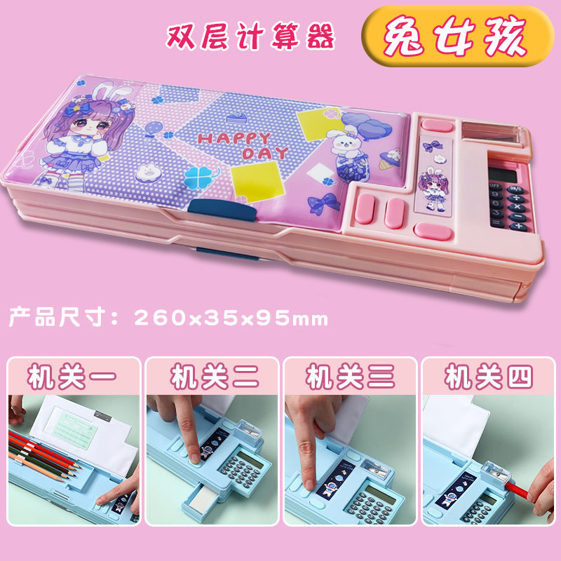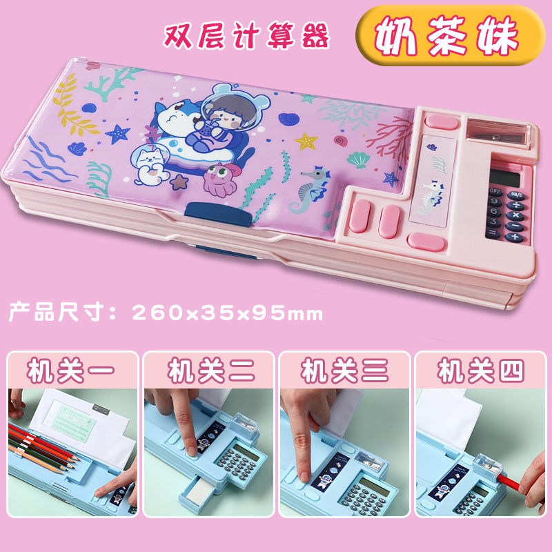 초등학생 플라스틱 필통 양면 오픈 필통 크리에이티브 다기능 계산기 펜 케이스