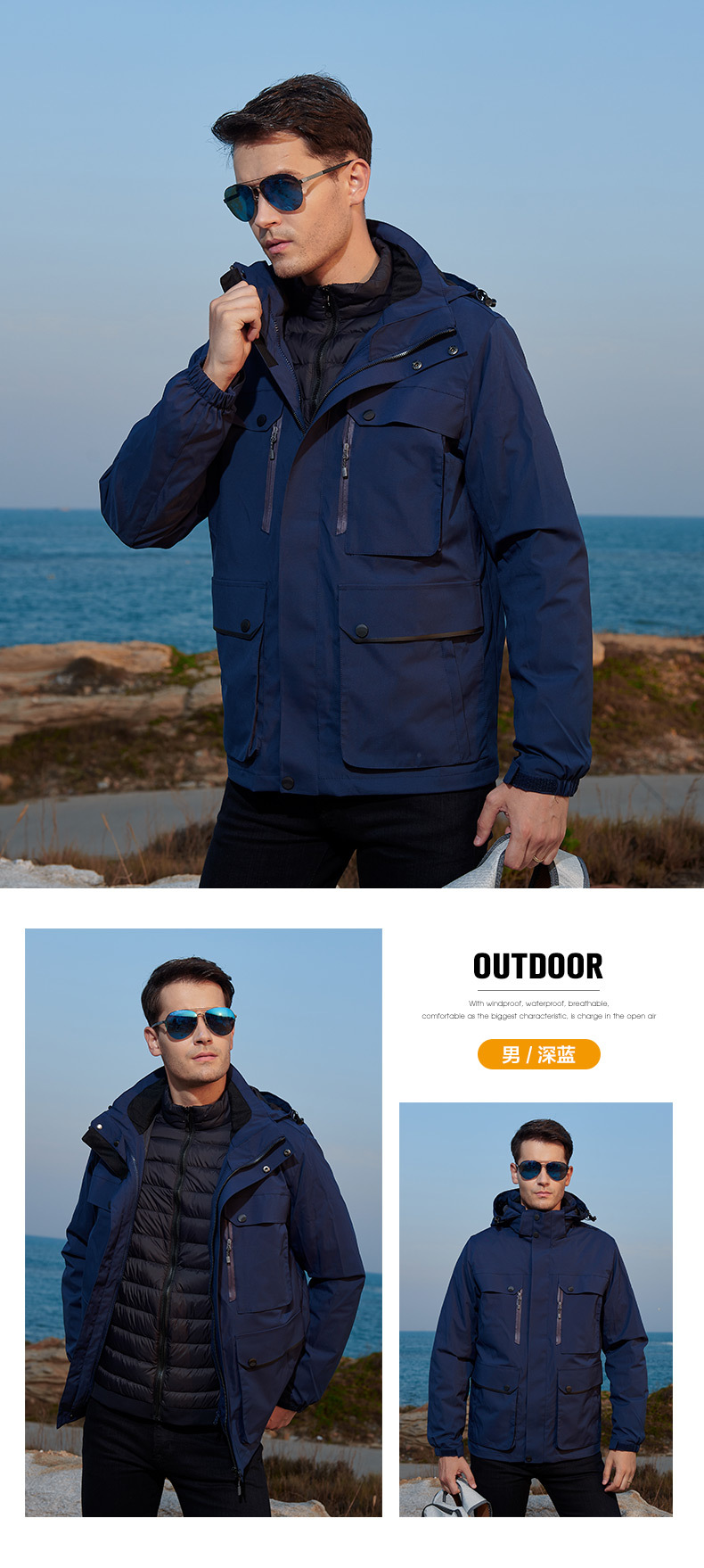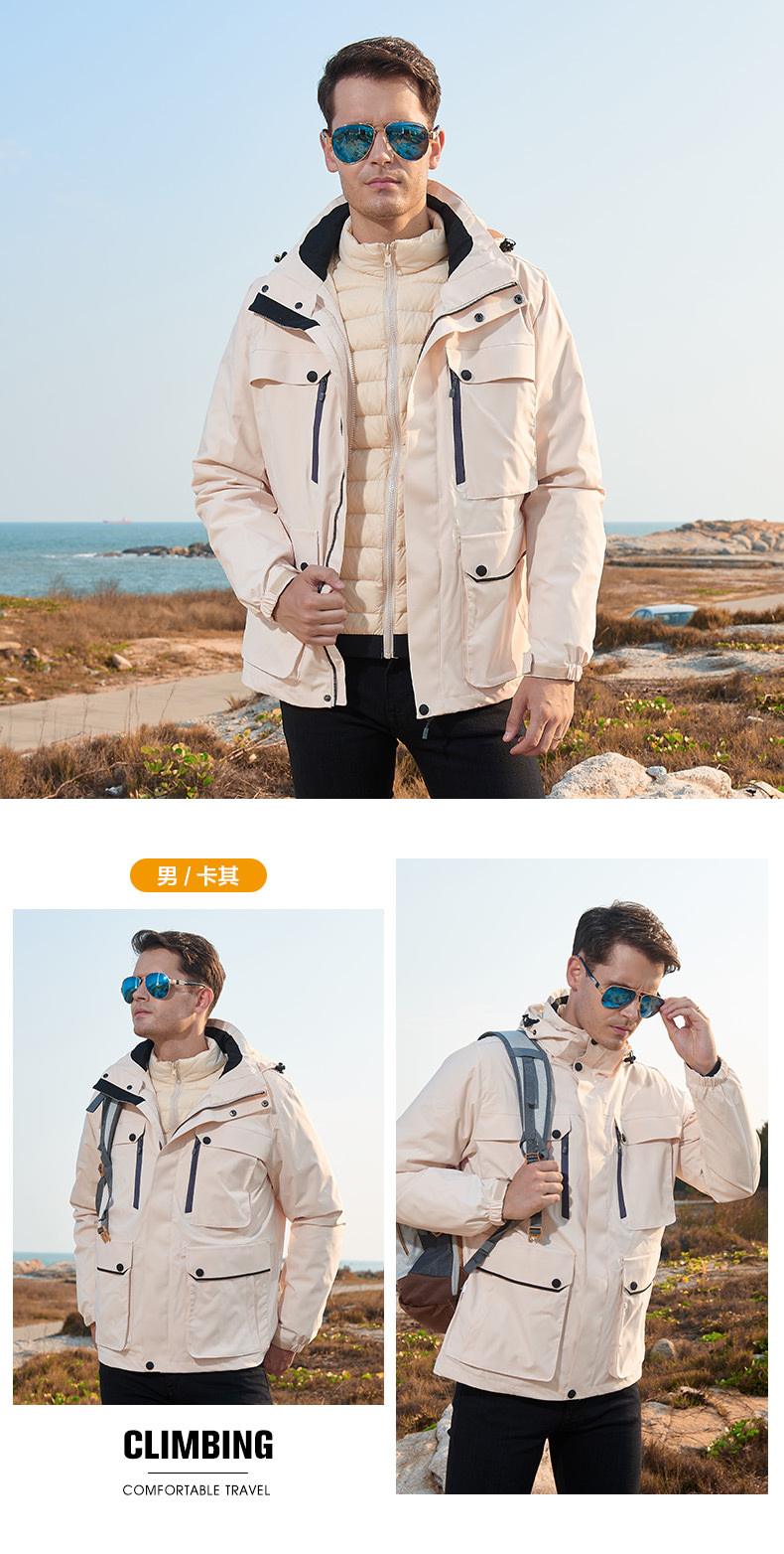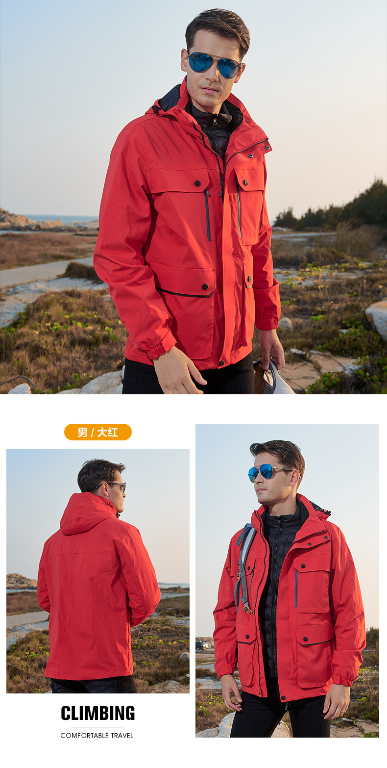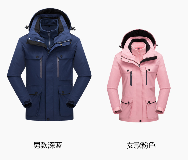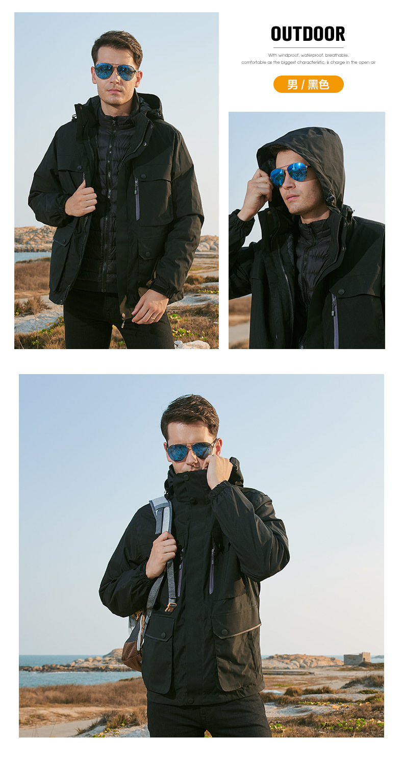 야외 러쉬 의류 3-in-one 남자의 두꺼운 가을과 겨울 분리형 2 피스 방풍 방수 등산 세트 인쇄 가능한 로고
