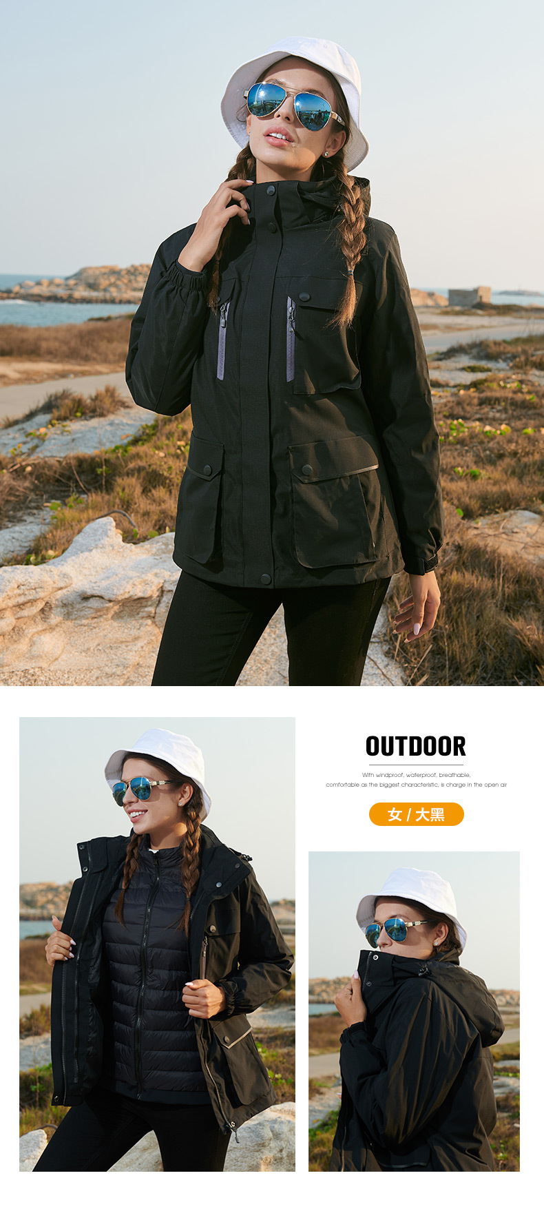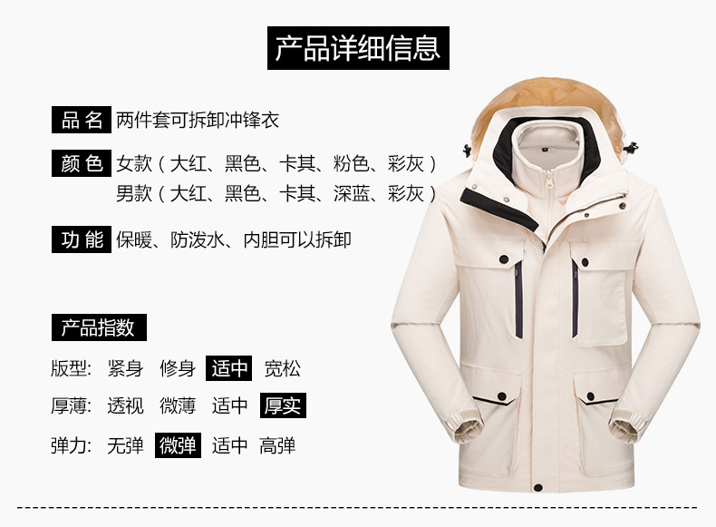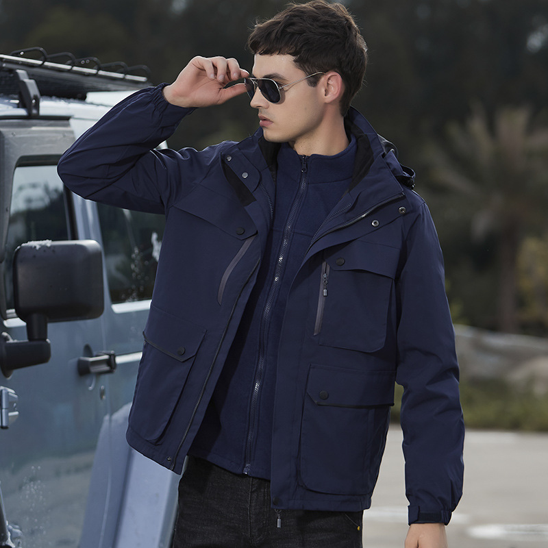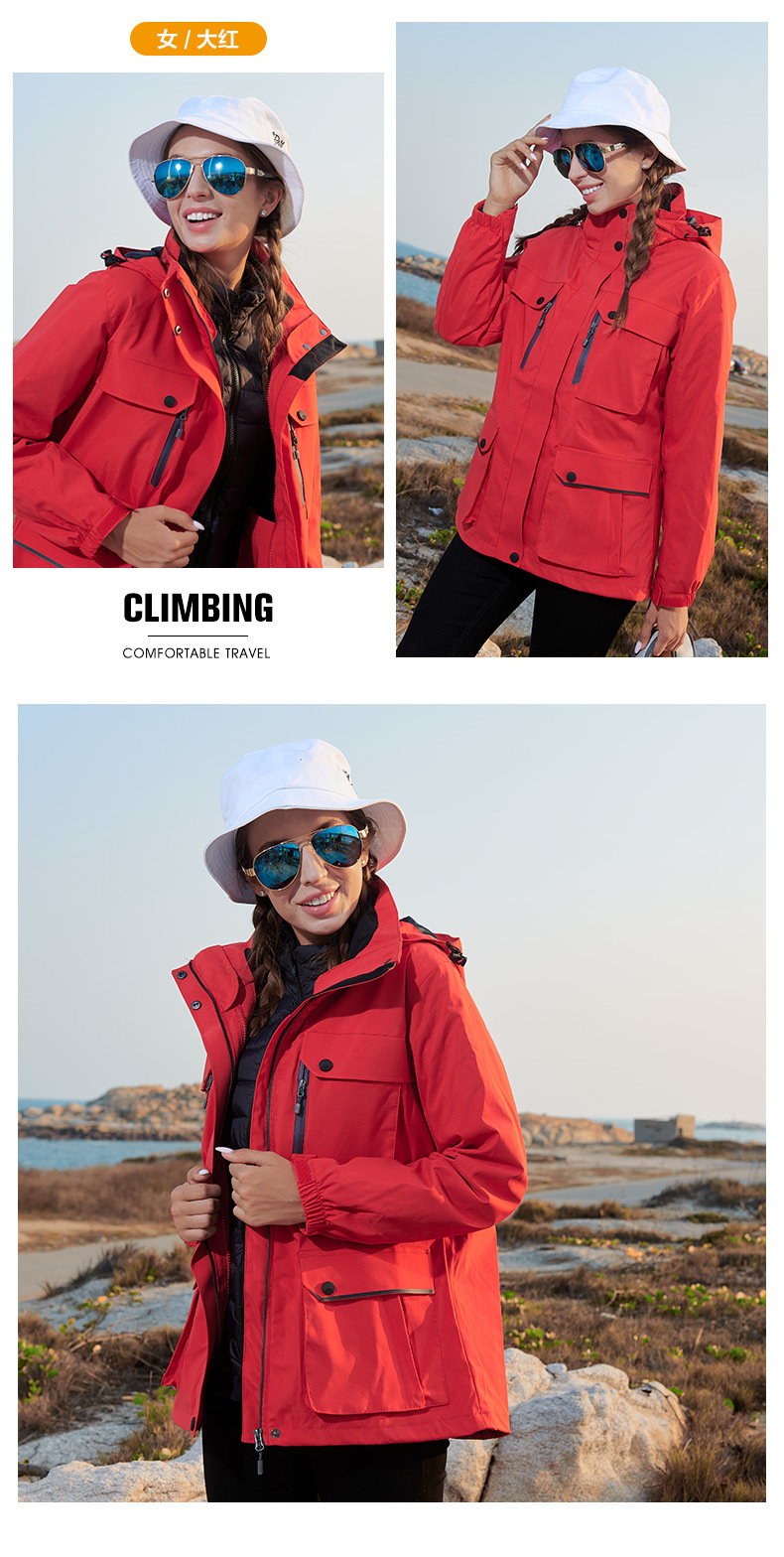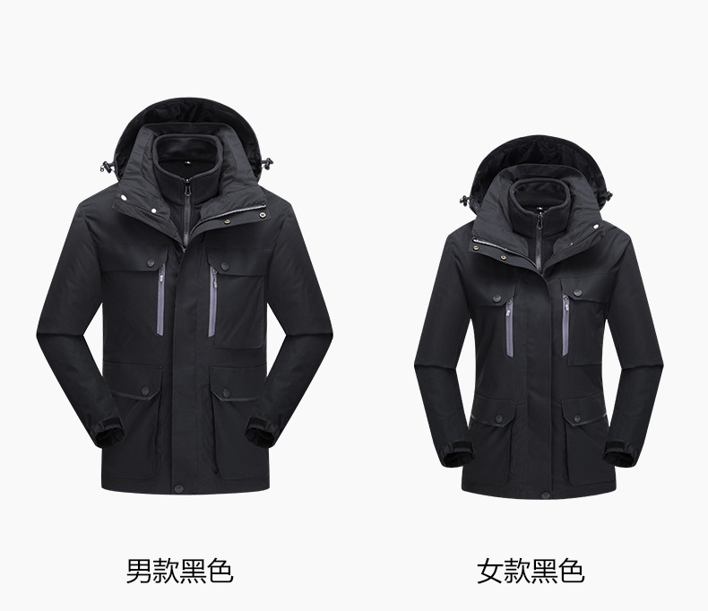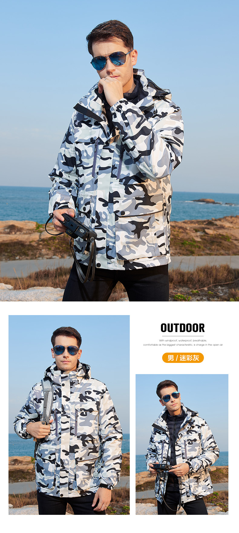 야외 러쉬 의류 3-in-one 남자의 두꺼운 가을과 겨울 분리형 2 피스 방풍 방수 등산 세트 인쇄 가능한 로고