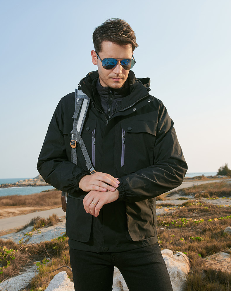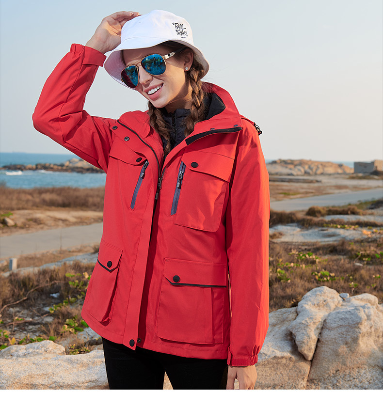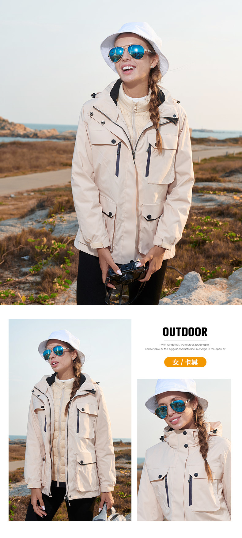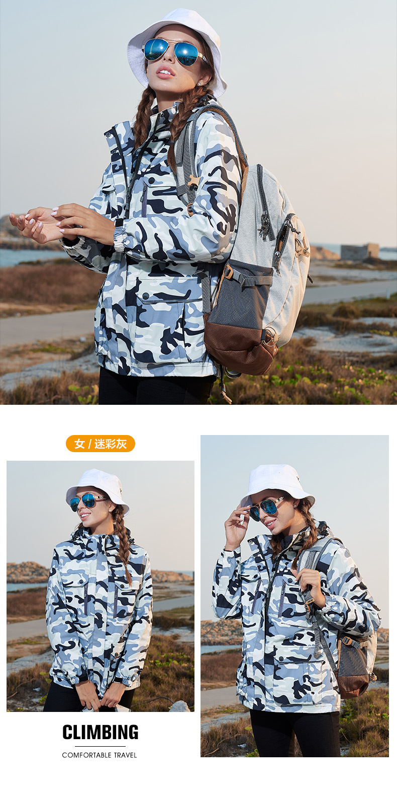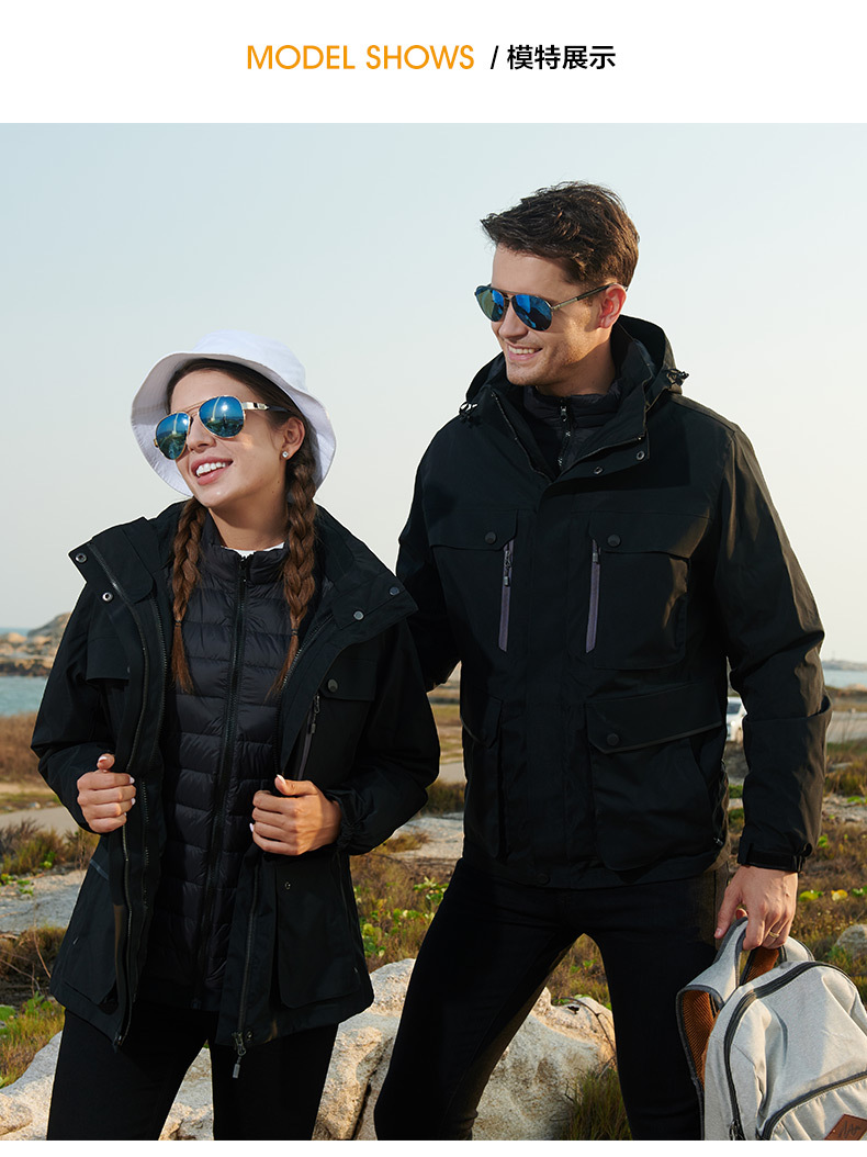 야외 러쉬 의류 3-in-one 남자의 두꺼운 가을과 겨울 분리형 2 피스 방풍 방수 등산 세트 인쇄 가능한 로고