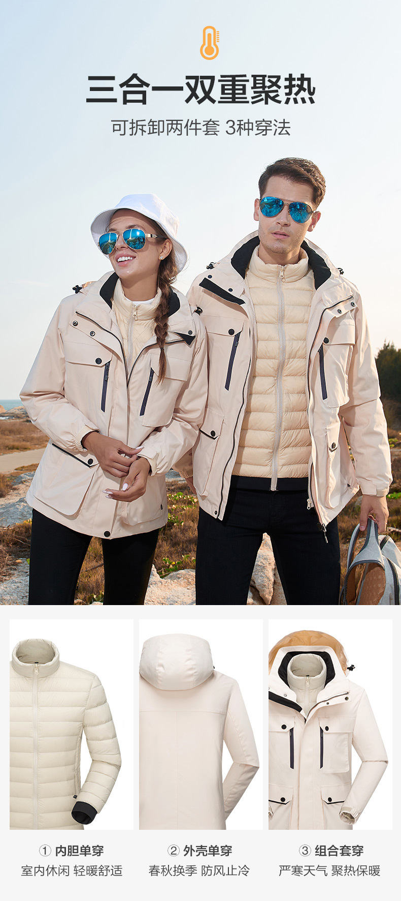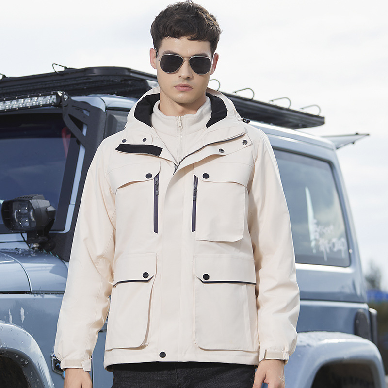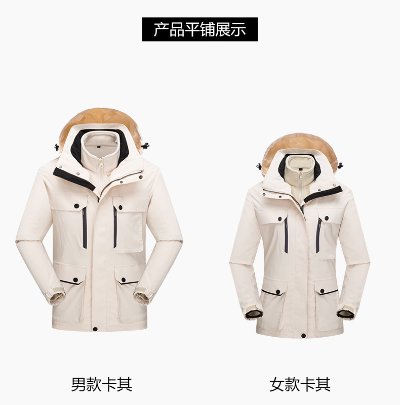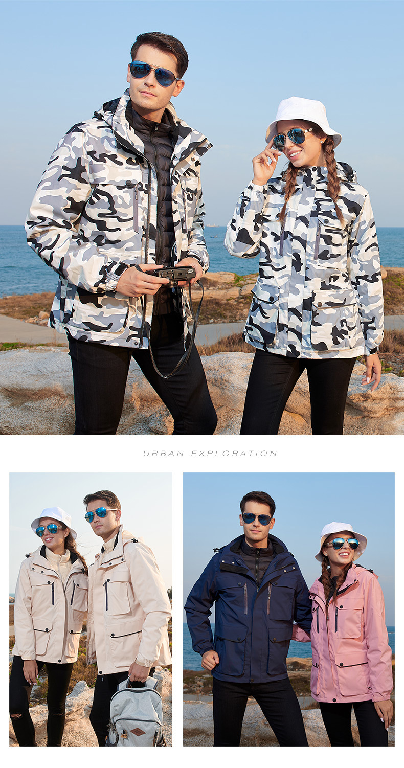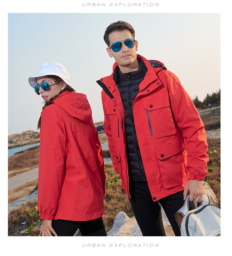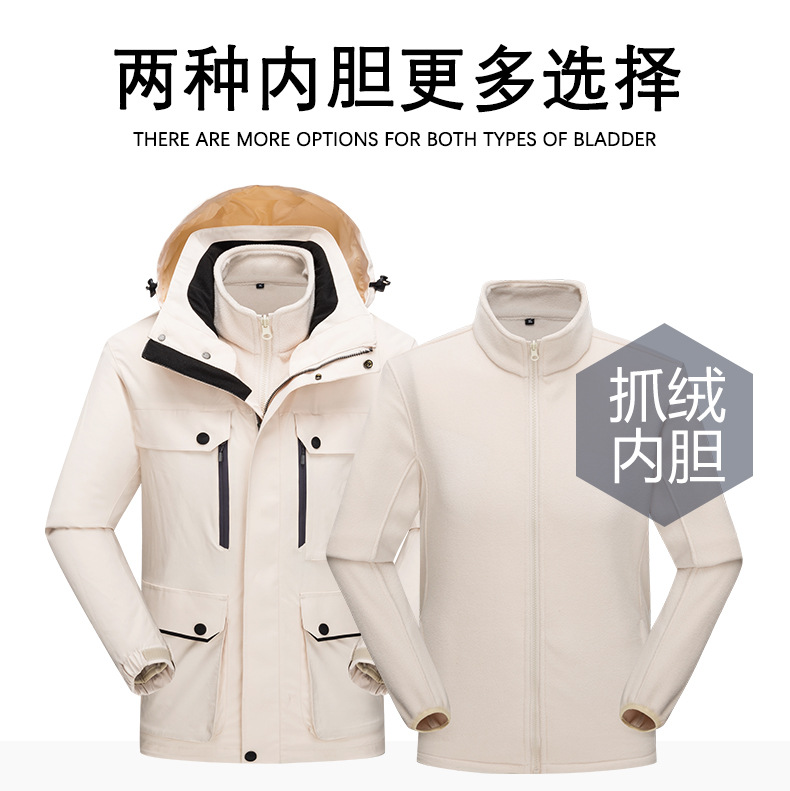 야외 러쉬 의류 3-in-one 남자의 두꺼운 가을과 겨울 분리형 2 피스 방풍 방수 등산 세트 인쇄 가능한 로고스토어 가기