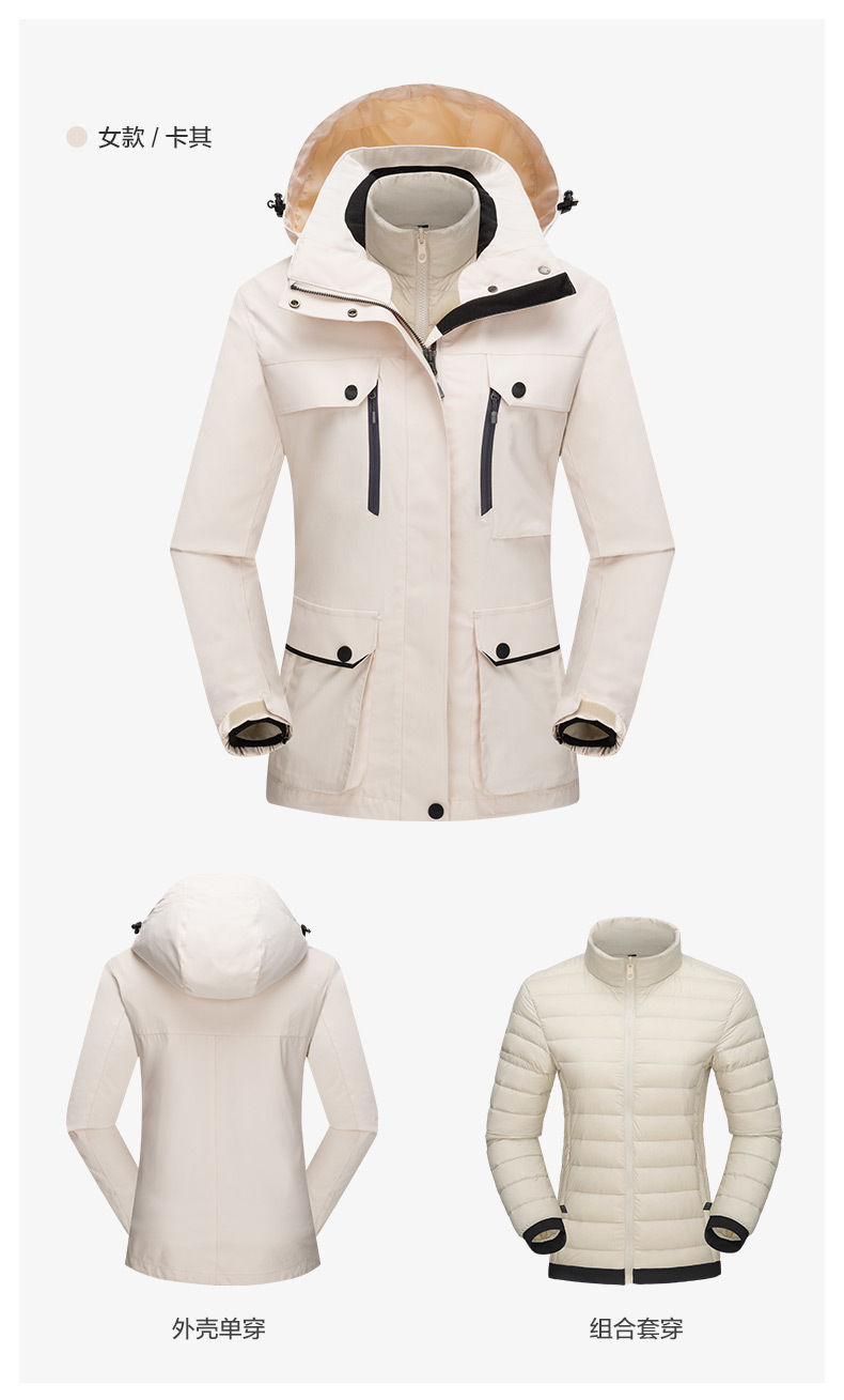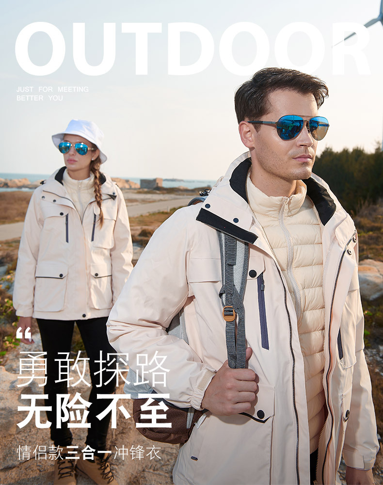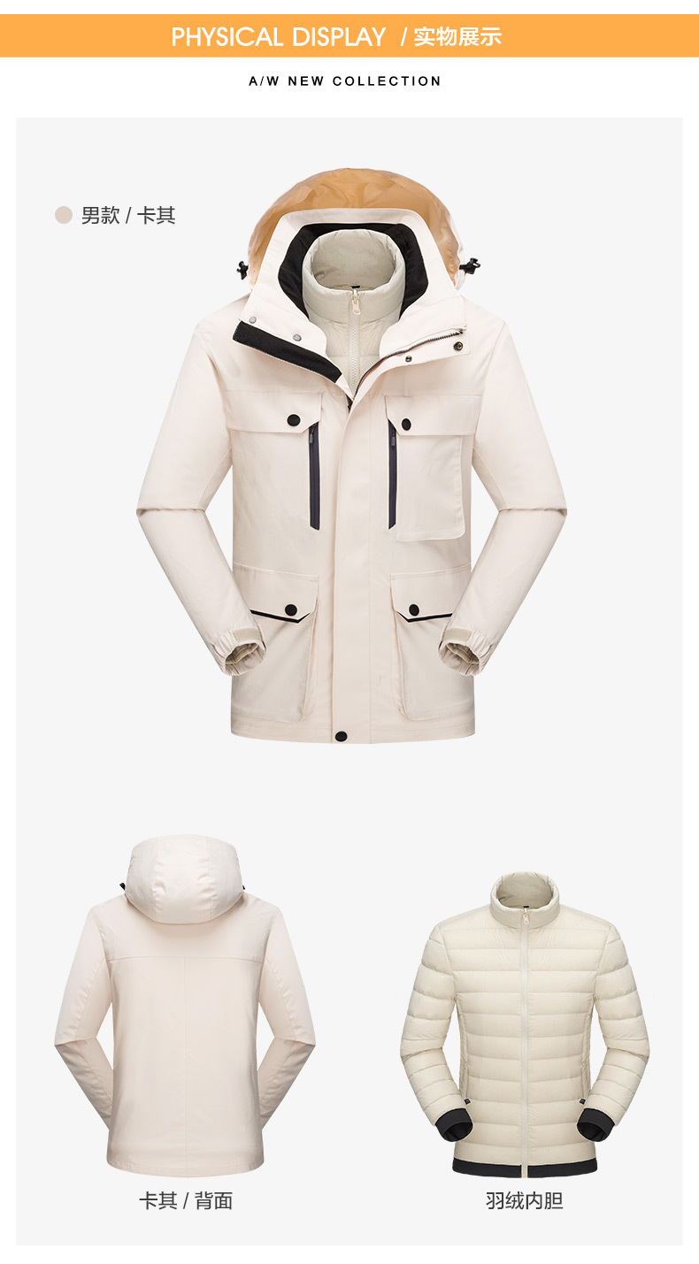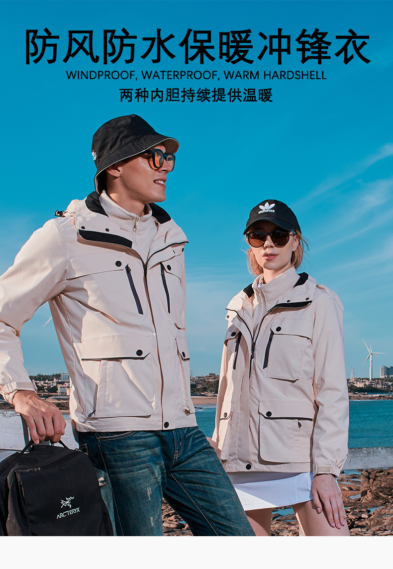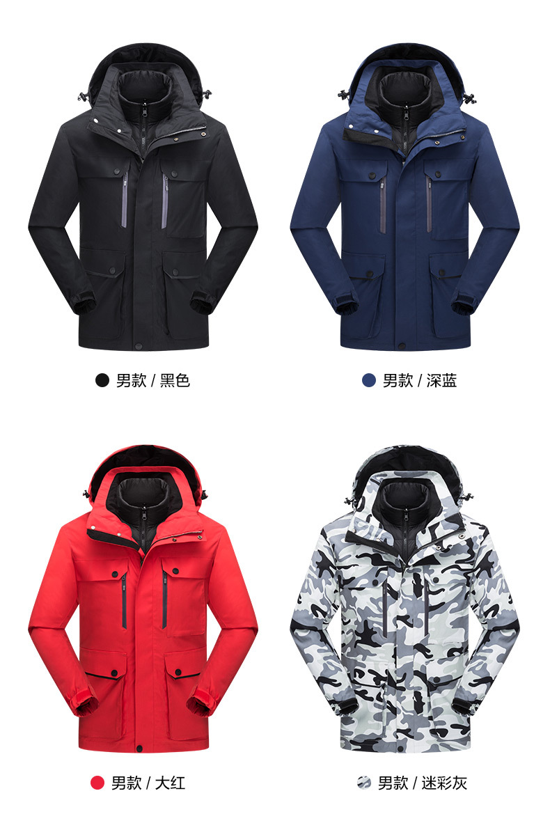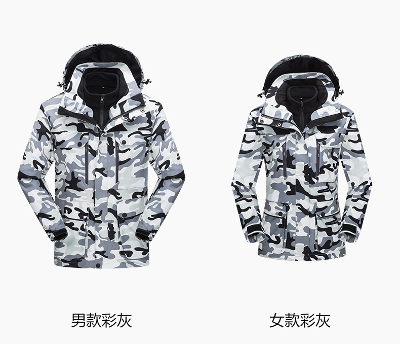 야외 러쉬 의류 3-in-one 남자의 두꺼운 가을과 겨울 분리형 2 피스 방풍 방수 등산 세트 인쇄 가능한 로고스토어 가기