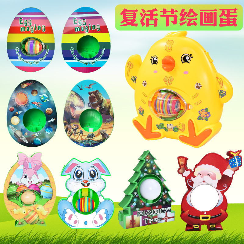 행복한 계란 장식 세트 부활절 DIY 그린 계란 그림 게임 드로잉 보드 물 거북스토어 가기