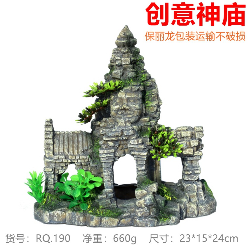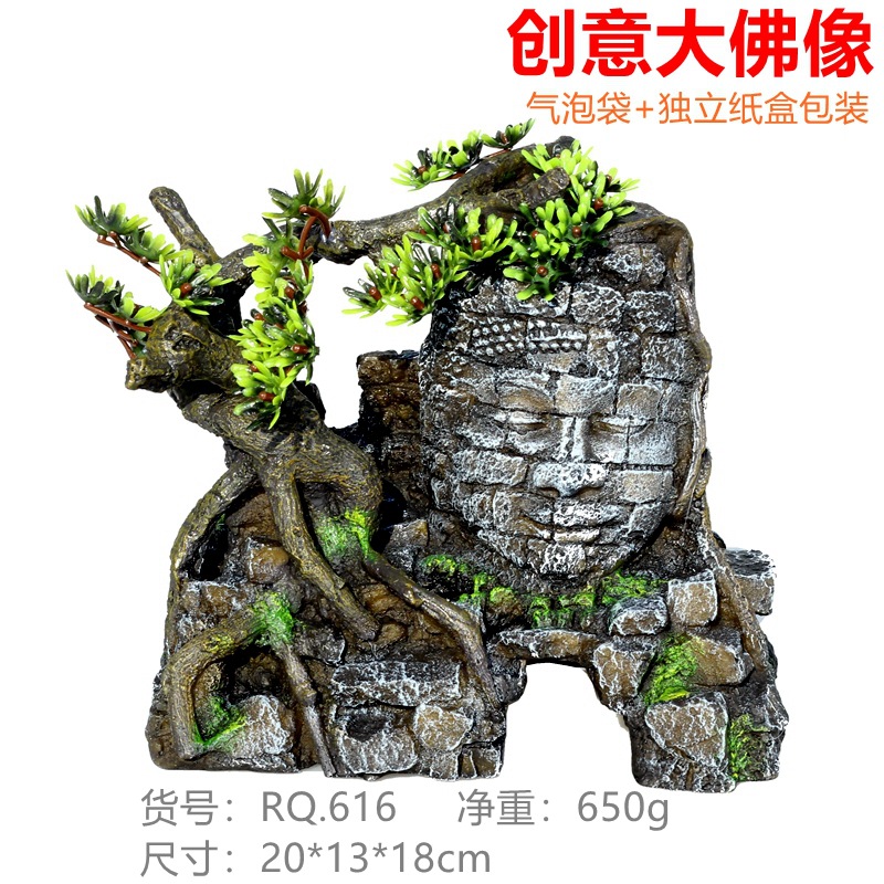 Ruiqi 수족관 새로운 창조적 인 큰 부처님 동상 트렁크 물고기 탱크 조경 성 트리 하우스 수지 장식품 국경 공급스토어 가기