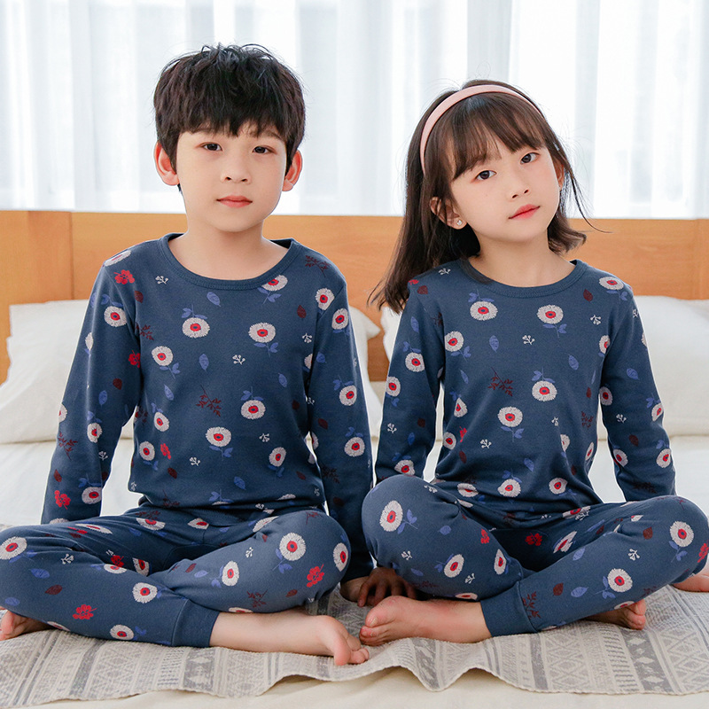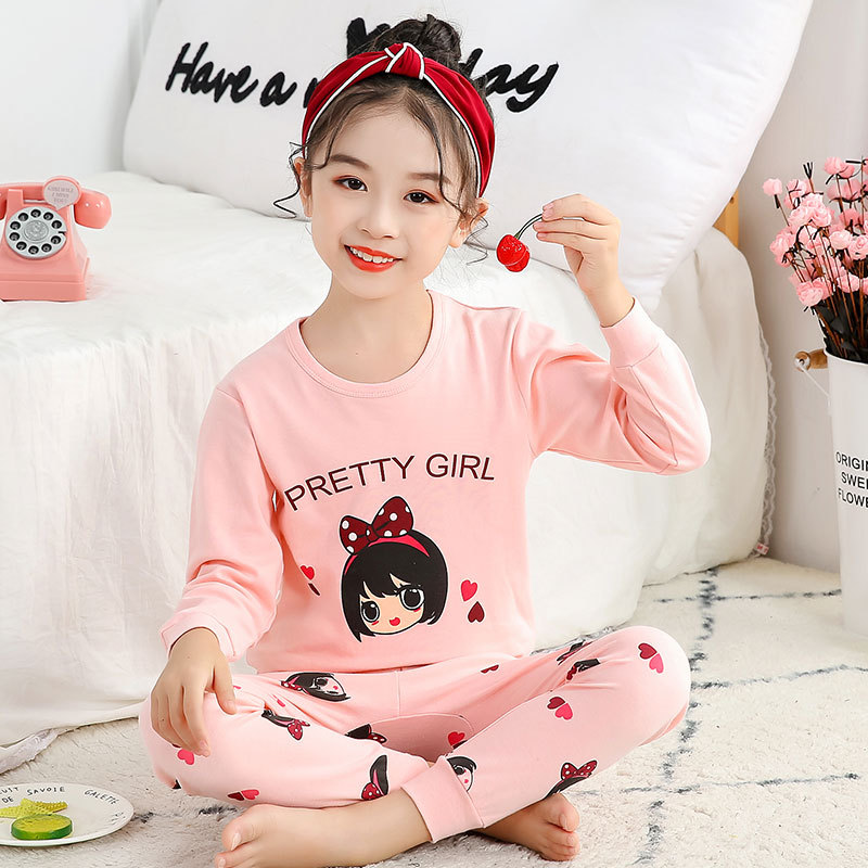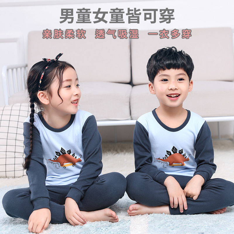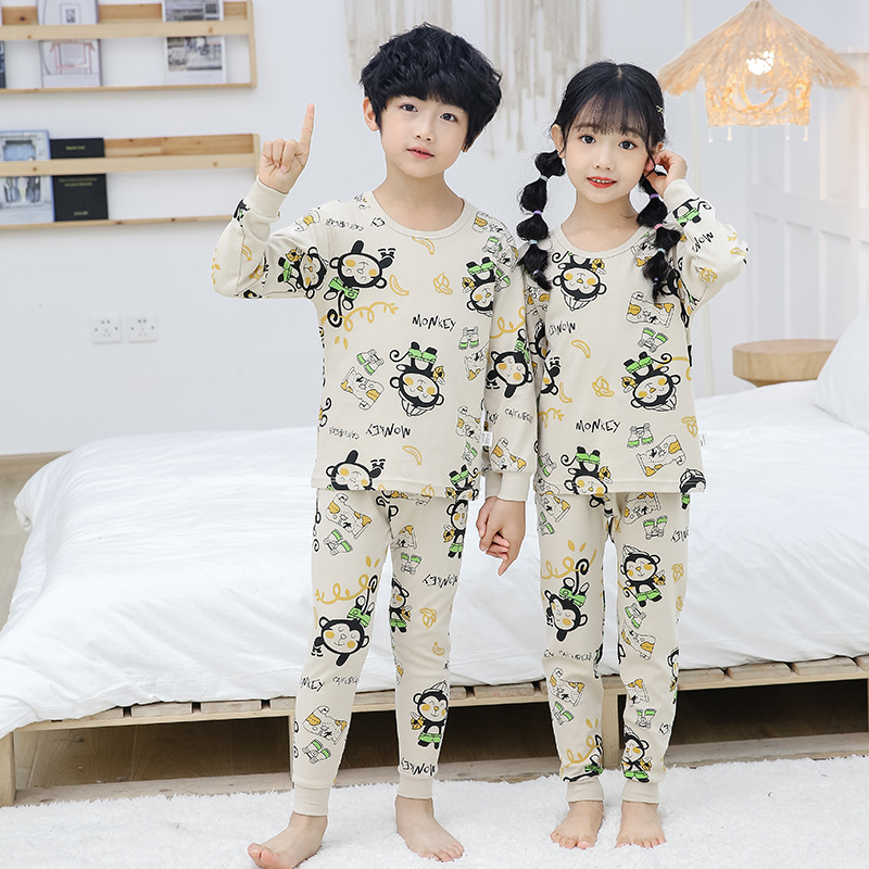 새로운 가을과 겨울 아동 가정 옷 세트 중소 아동 면 잠옷 2 종 세트 머리 세대