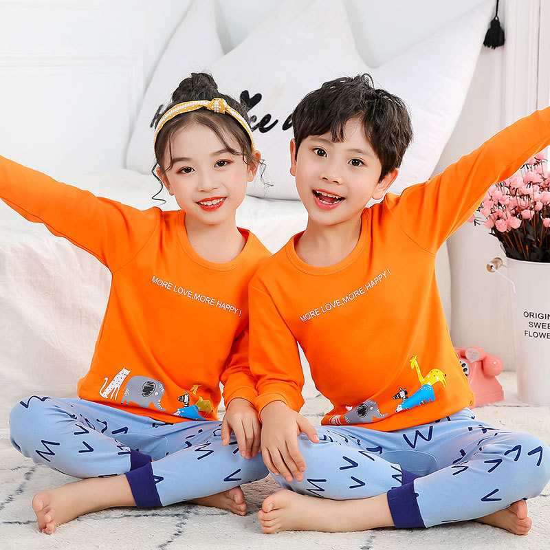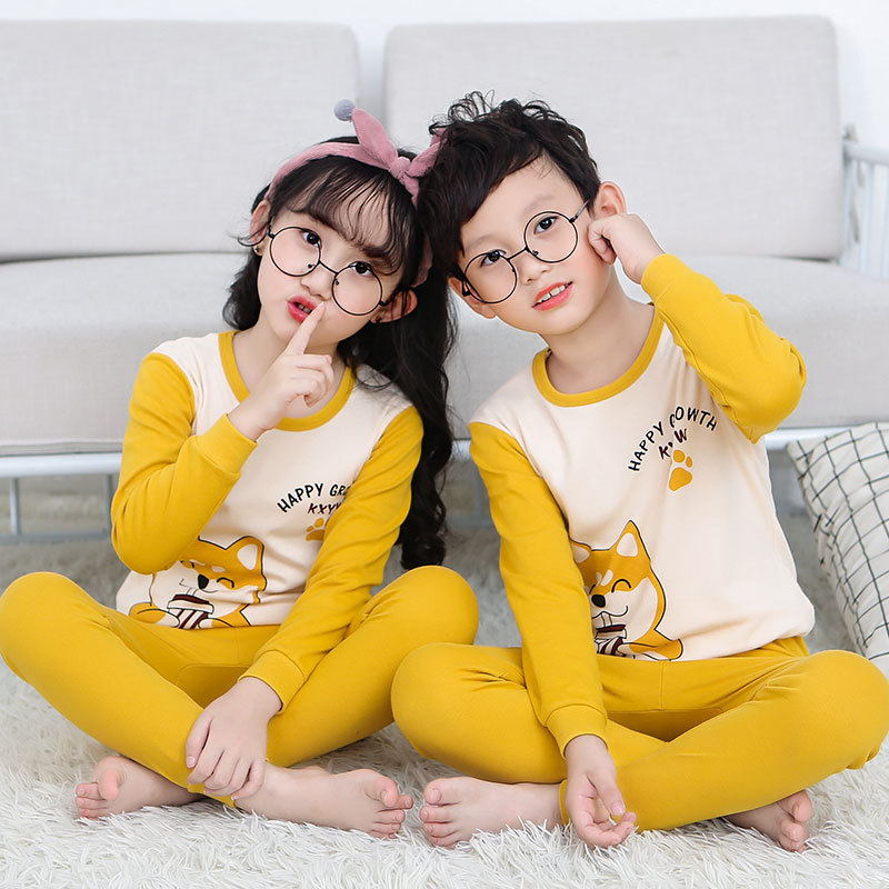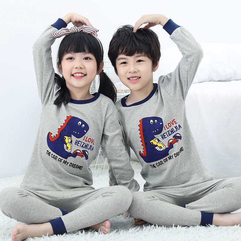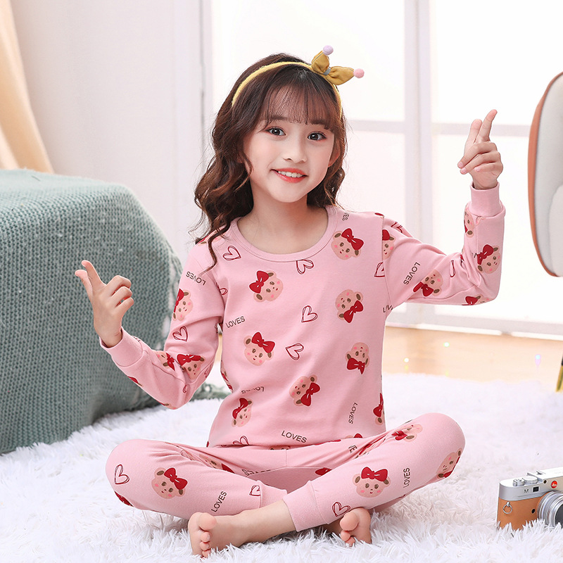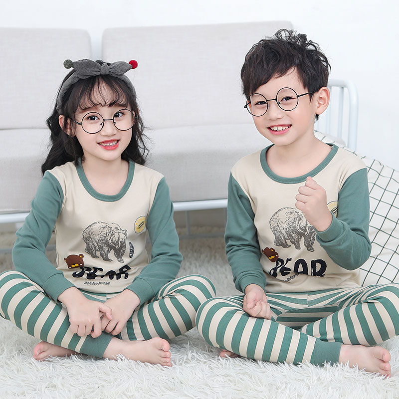 새로운 가을과 겨울 아동 가정 옷 세트 중소 아동 면 잠옷 2 종 세트 머리 세대스토어 가기