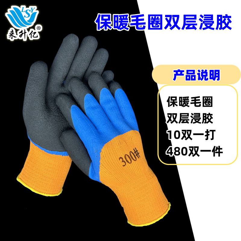 따뜻한 테리 장갑 폼 니트 장갑 양각 딥 내마모성 교수형 접착제 미끄럼 방지 두꺼운 양모 노동 보호 장갑
