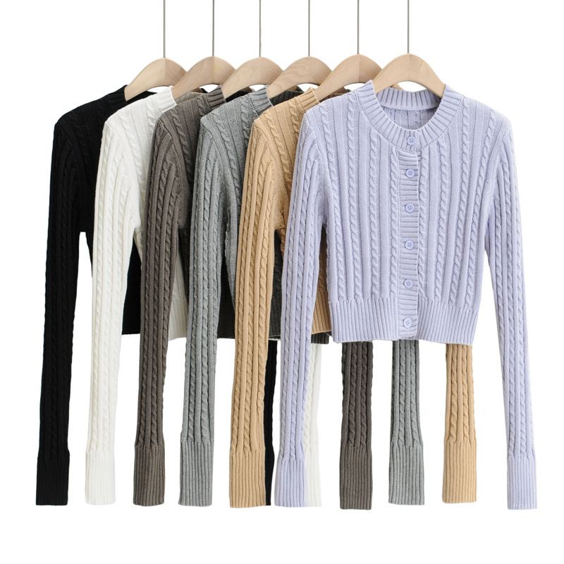 AP20305-21 한국 스타일 라운드 넥 트위스트 니트 싱글 브레스트 니트 긴 소매 작은 카디건 재킷 최고 여성스토어 가기