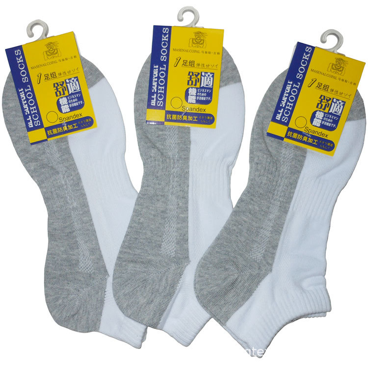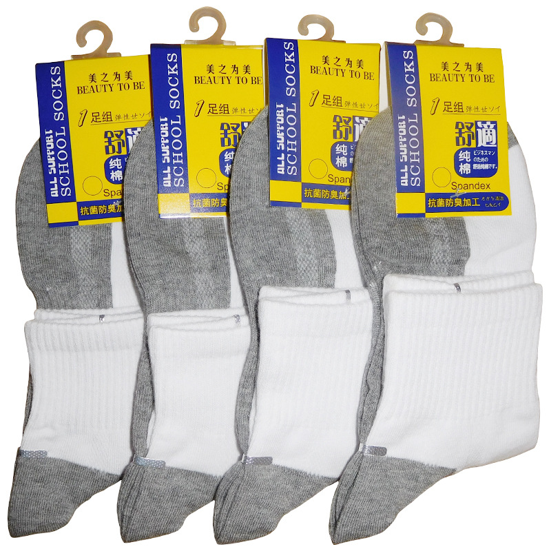 运动学生精梳棉袜新款拼色耐脏学校袜小中大童白色灰底学生袜批发¥2.75立即购买