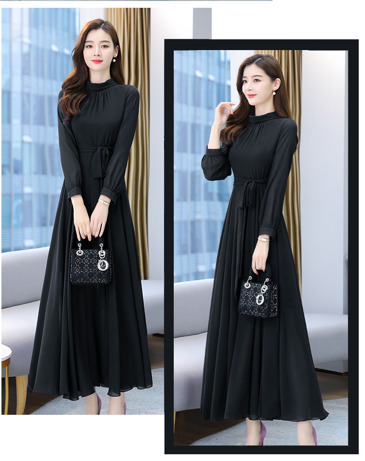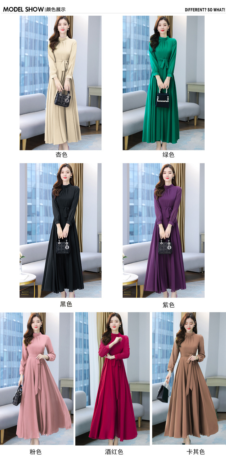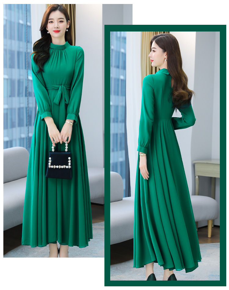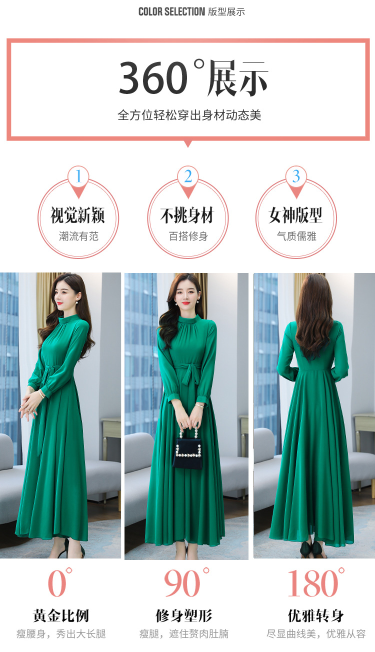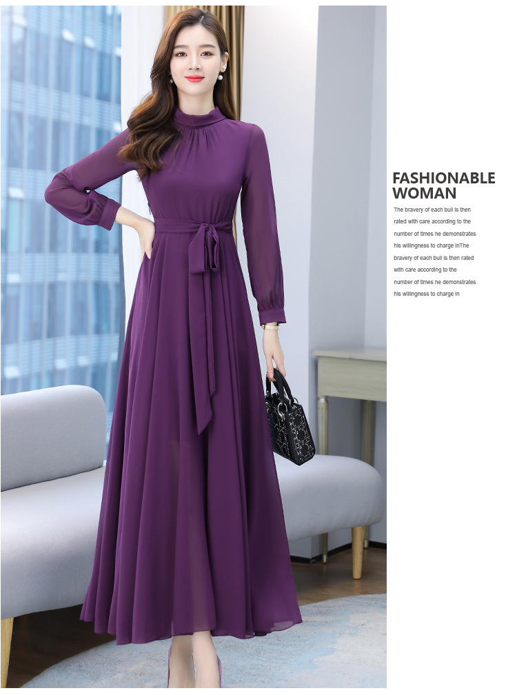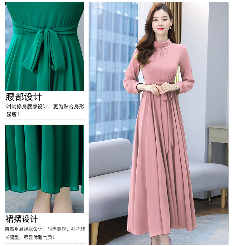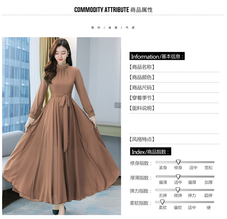 봄 2024 새로운 우아한 타이트 허리 슬림 핏 무릎 위 솔리드 컬러 쉬폰 긴 소매 원피스 비치 원피스스토어 가기