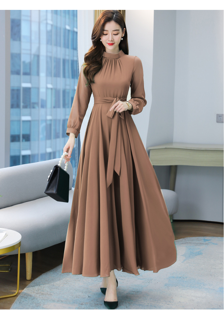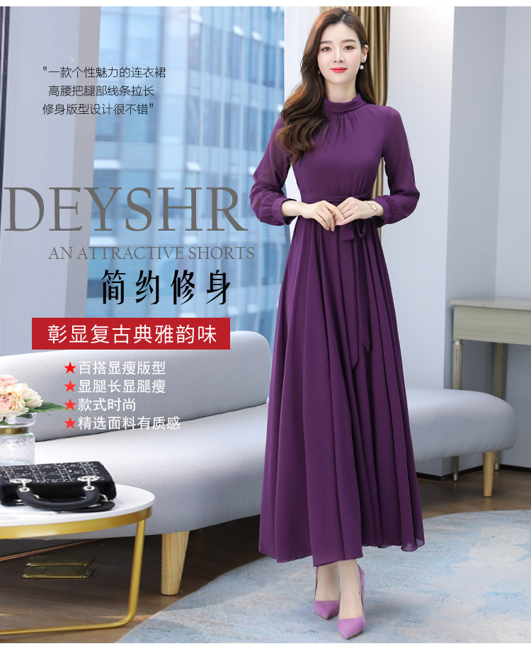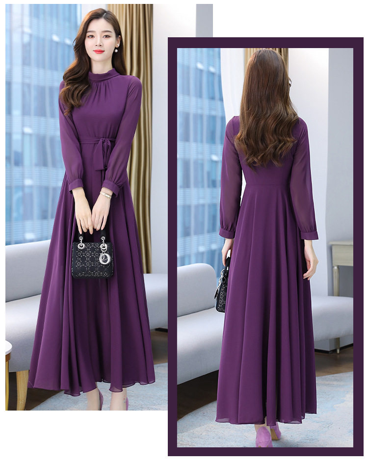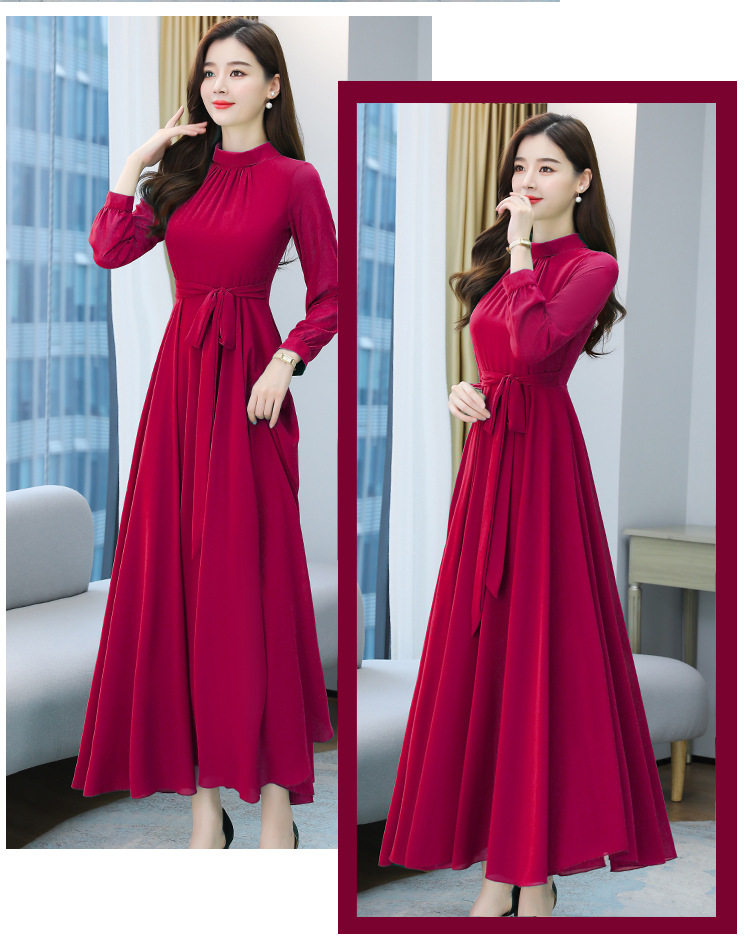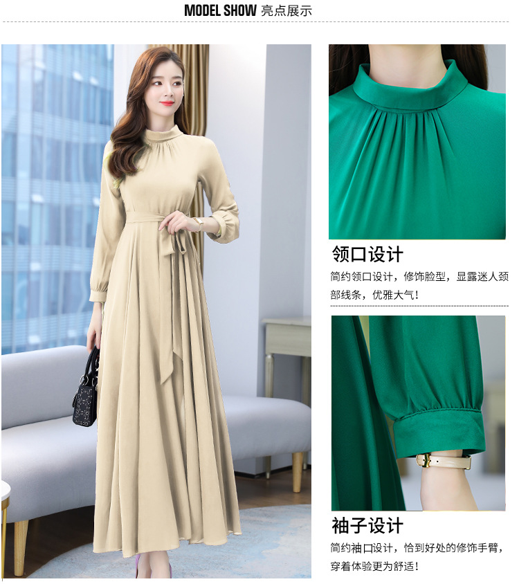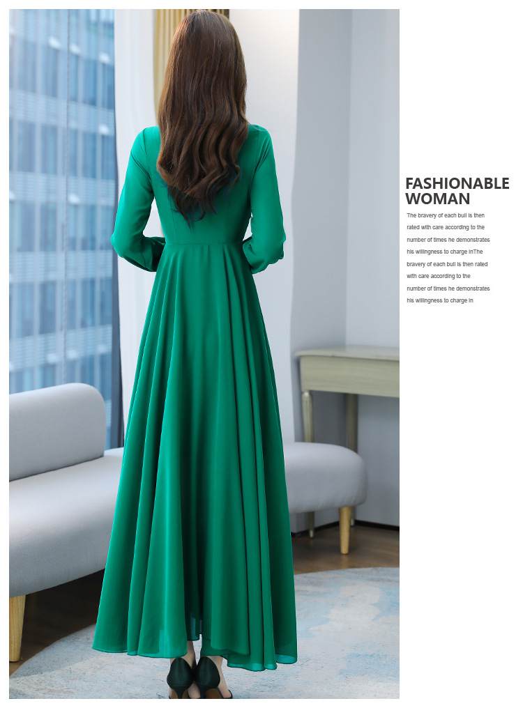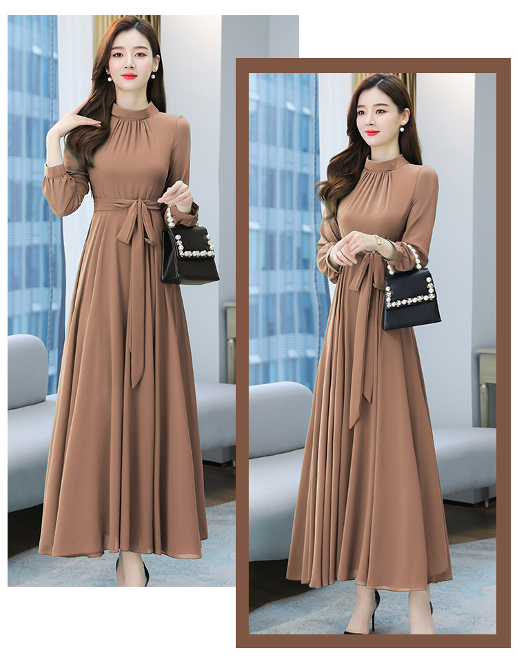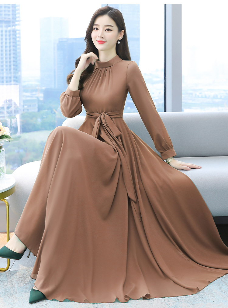 봄 2024 새로운 우아한 타이트 허리 슬림 핏 무릎 위 솔리드 컬러 쉬폰 긴 소매 원피스 비치 원피스스토어 가기