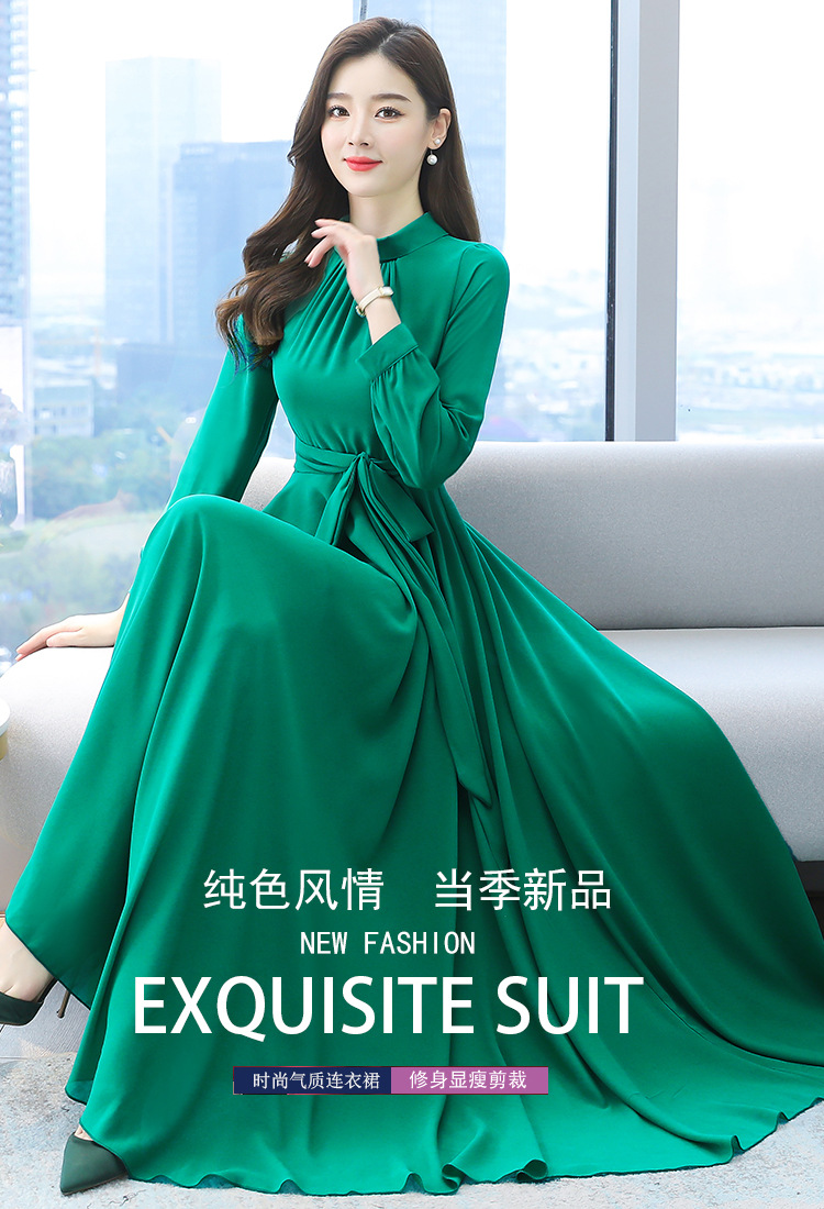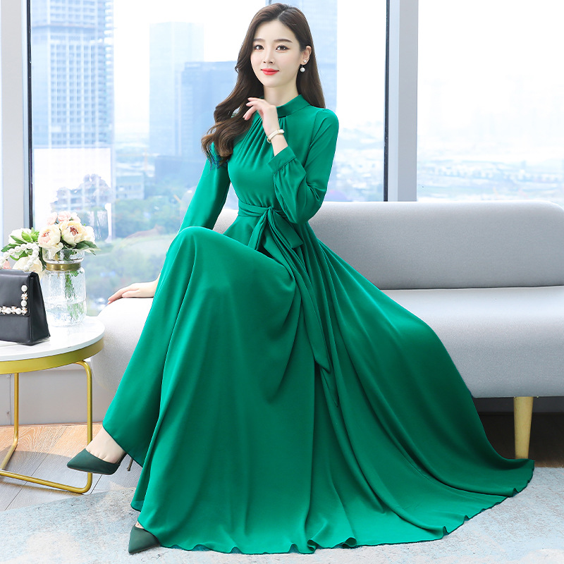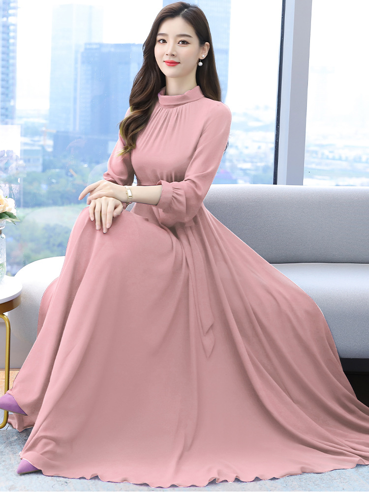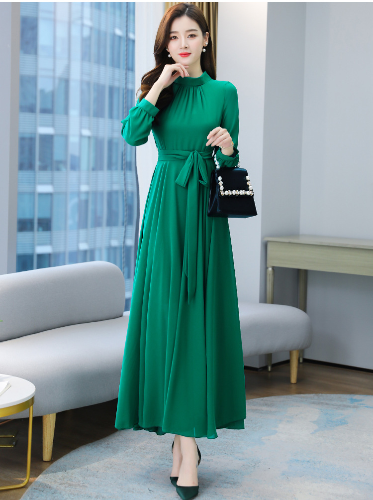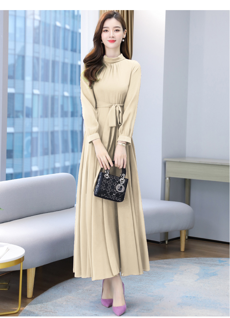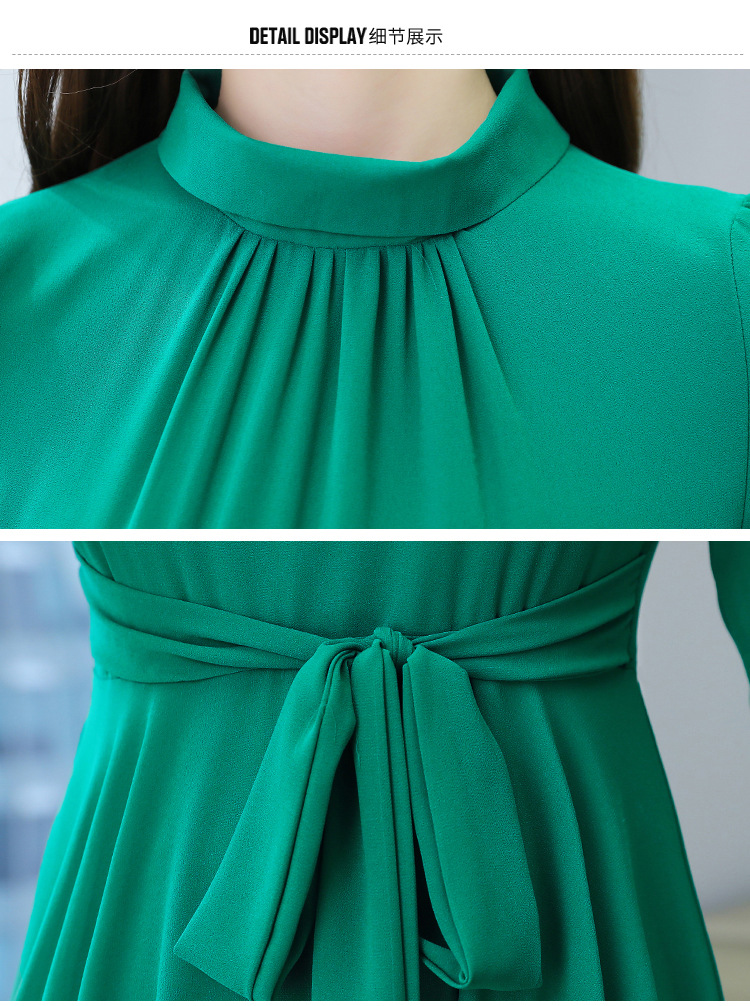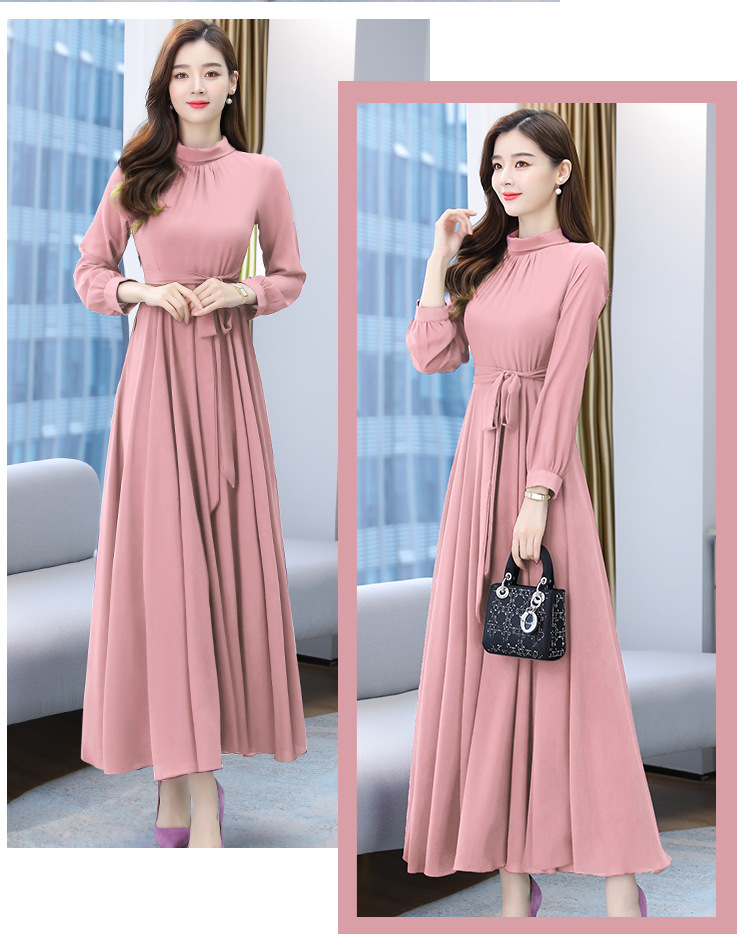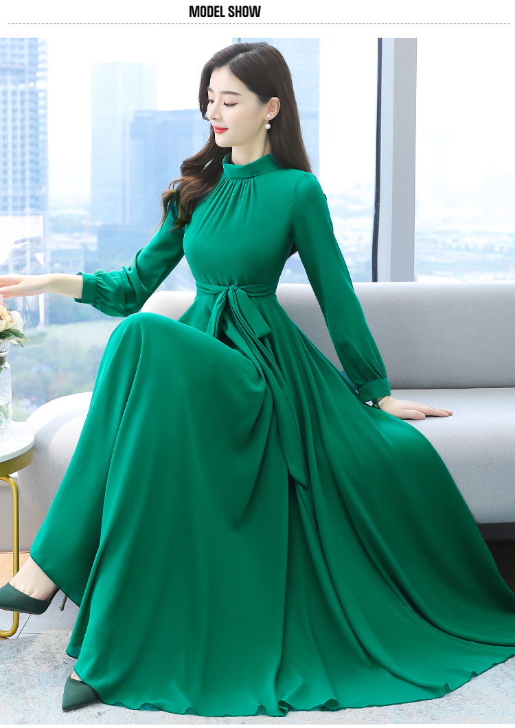 봄 2024 새로운 우아한 타이트 허리 슬림 핏 무릎 위 솔리드 컬러 쉬폰 긴 소매 원피스 비치 원피스스토어 가기