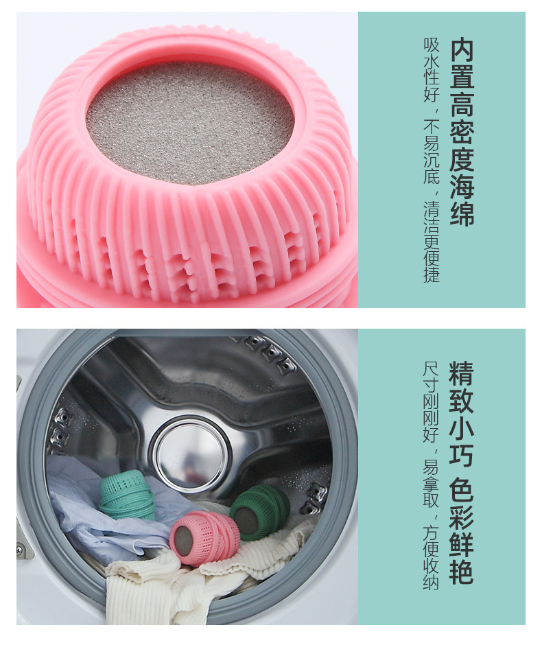• 商品名称:防缠绕防打结洗衣球 带海绵可加液去污球--粉色