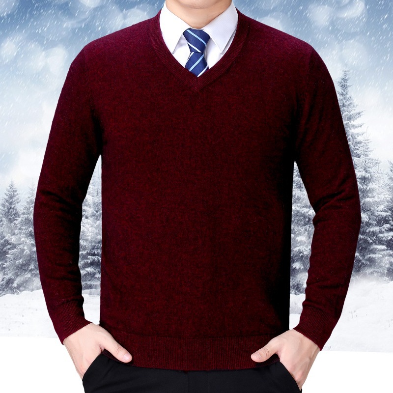 가을과 겨울 새로운 스웨터 남성용 치킨 하트 칼라 풀오버 단색 스웨터 남성용 V 넥 두꺼운 따뜻한 중년 스웨터