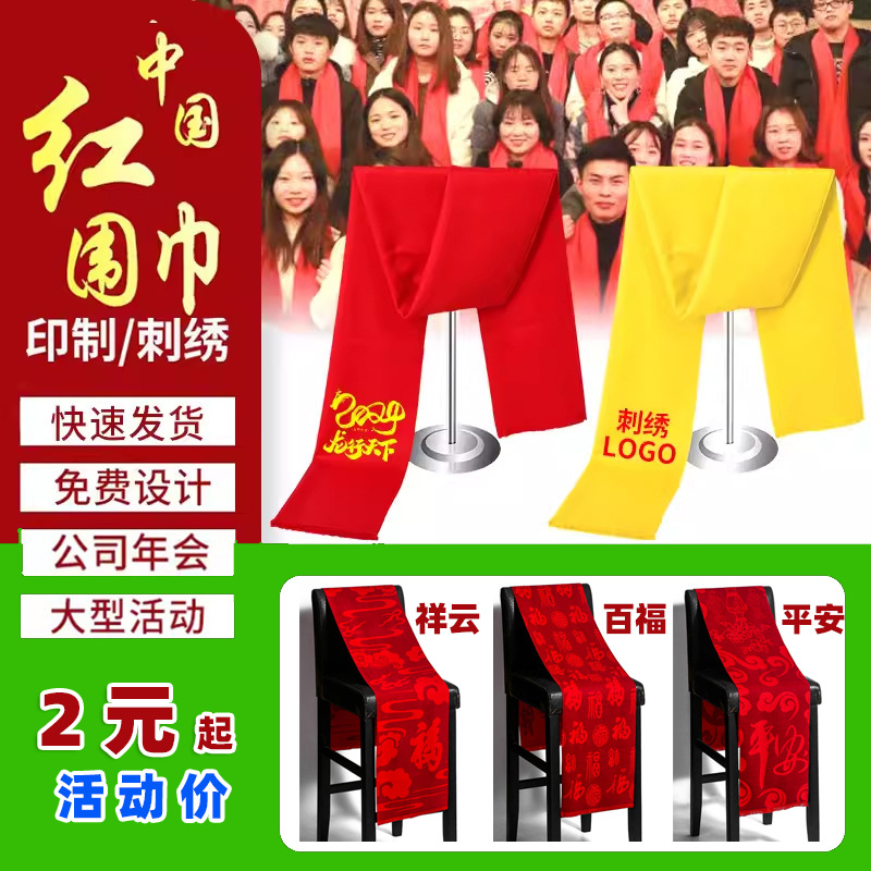 중국 빨간 새해 파티 빨간 스카프 인쇄 로고 인터넷 빨간 들러리 핑크 아이보리 파란 스카프 도매 인쇄스토어 가기