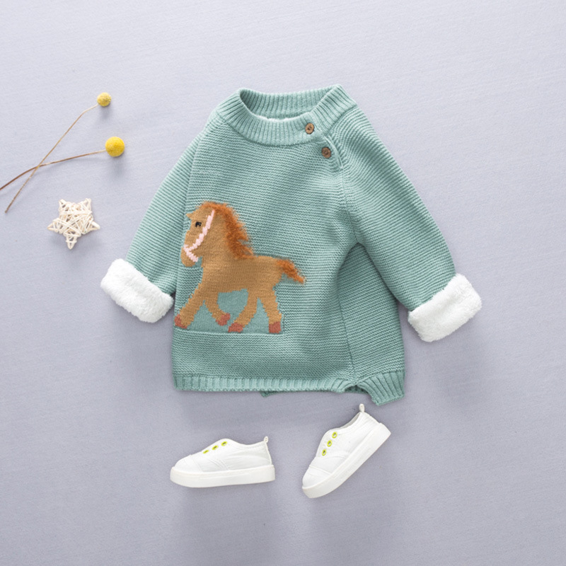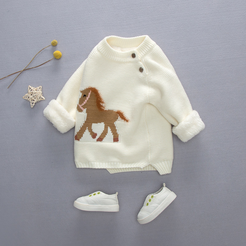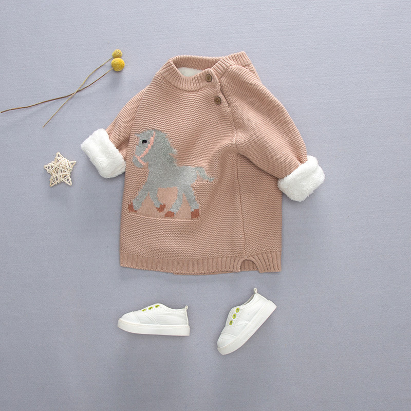 아동용 스웨터 2025 가을 겨울 새로운 스타일 벨벳 두꺼운 소년과 소녀 베이비 라운드 넥 니트 풀오버 따뜻한 기본 셔츠
