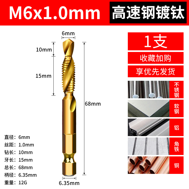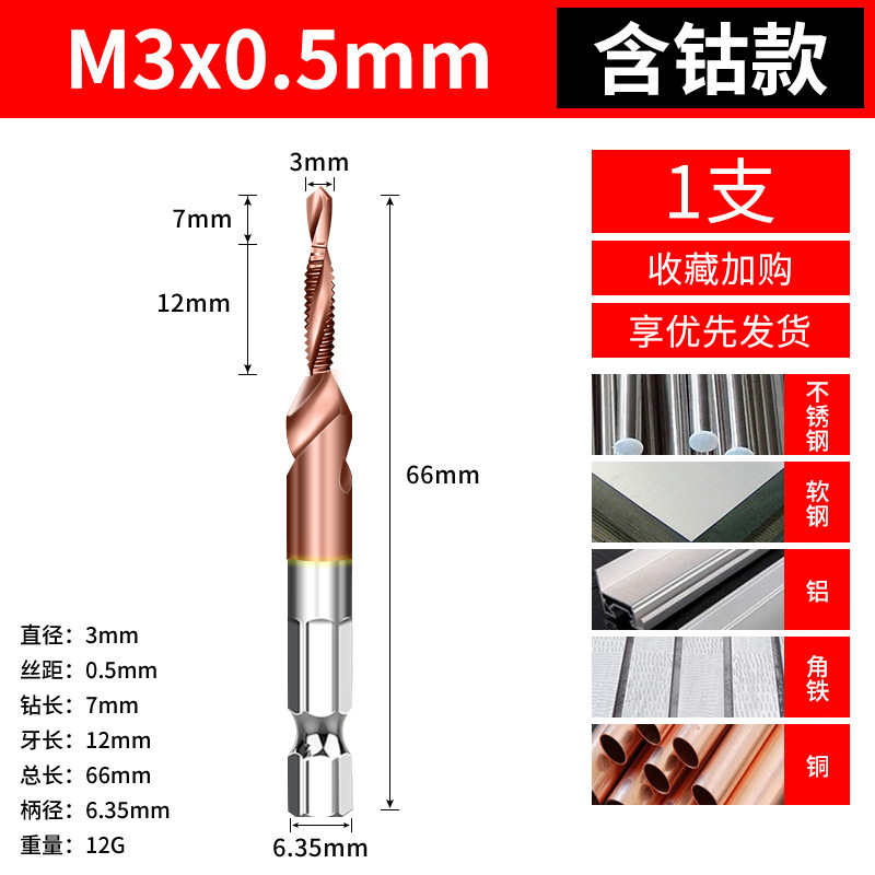 머신 탭 육각 생크 드릴링 및 태핑 모따기 통합 복합 와이어 태핑 고속 스틸 나선형 오프닝 슬리브 와이어 드릴 비트스토어 가기