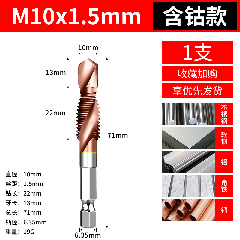 머신 탭 육각 생크 드릴링 및 태핑 모따기 통합 복합 와이어 태핑 고속 스틸 나선형 오프닝 슬리브 와이어 드릴 비트