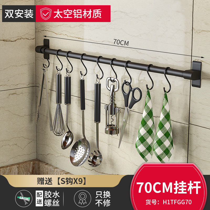 • 알루미늄 북유럽 주방 행잉로드-블랙 70CM9 후크 (천공 네일 프리 이중 사용)