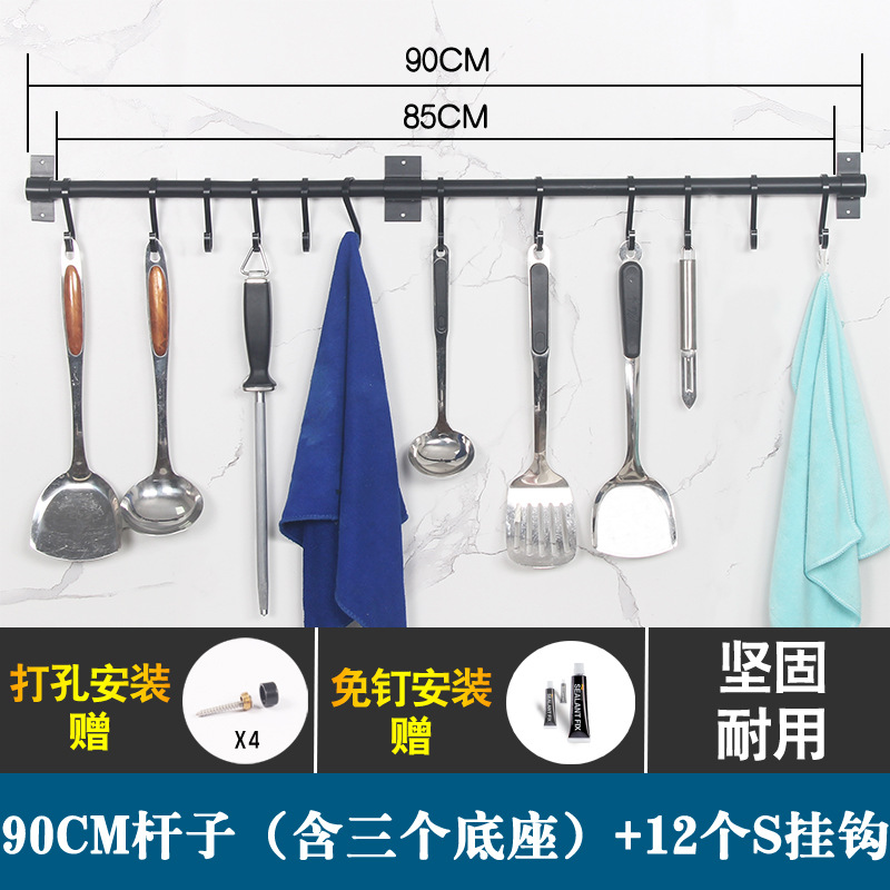 • 알루미늄 북유럽 주방 행잉로드-블랙 90CM12 후크 (천공 네일 프리 이중 사용)