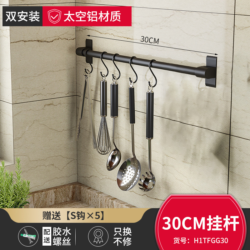• 알루미늄 북유럽 주방 행잉로드-블랙 30CM5 후크 (천공 네일 프리 이중 사용)