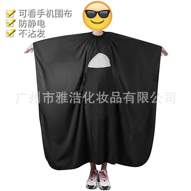 围布尺寸170*140大款式,不粘发,防静电,理发时可看手机,5个颜色可选,家用发廊均可使用精修有文案-去水印