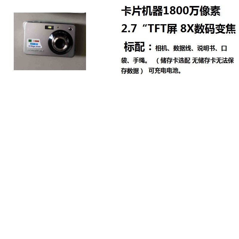 选套餐配4个5号电池。本机器使用4节五号电池。另外库存有内置充电电池无需另外安装电池。根据库存随机发货。带内置闪光灯。全自动机器。单反款式。16X变焦。标配为:相机+数据线。标配无储存卡,如果没有储存卡无法使用哦。请选套餐才可以使用。