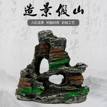 厂家直销 鱼缸造景假山 树脂工艺品人工假山水族箱装饰摆件中国风