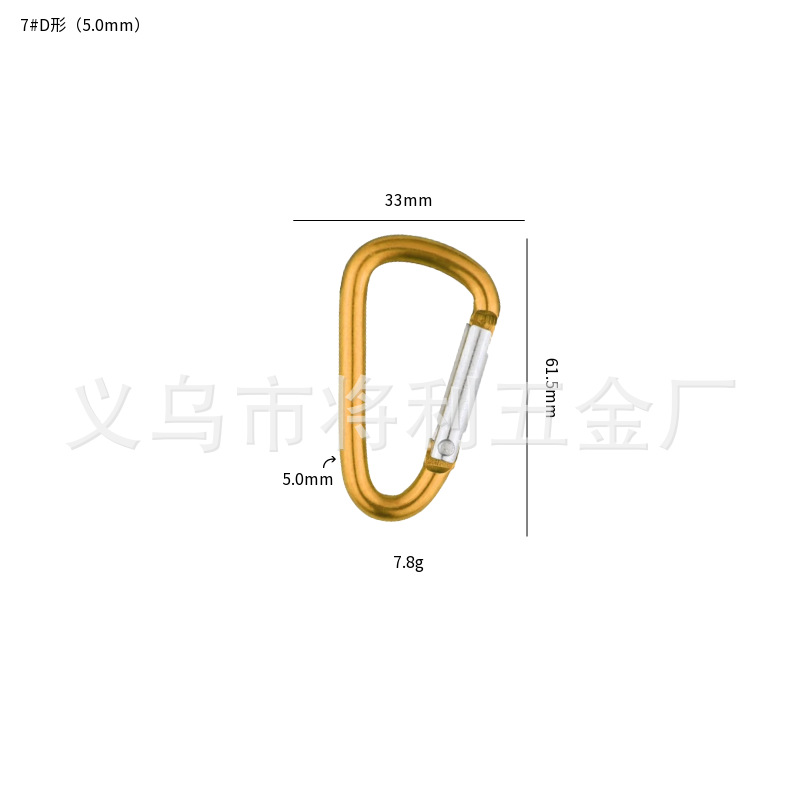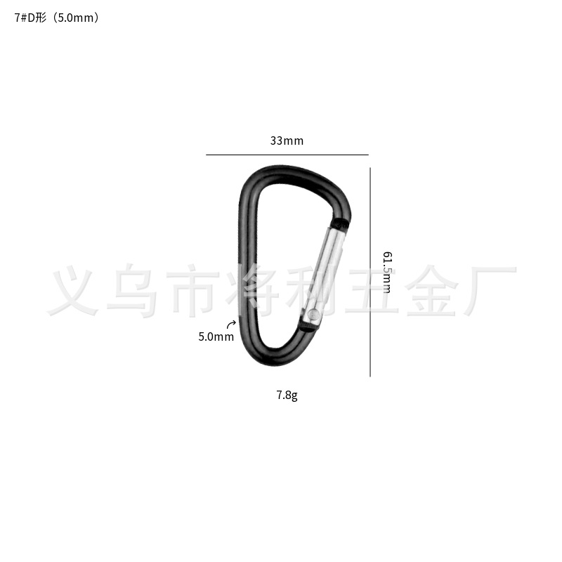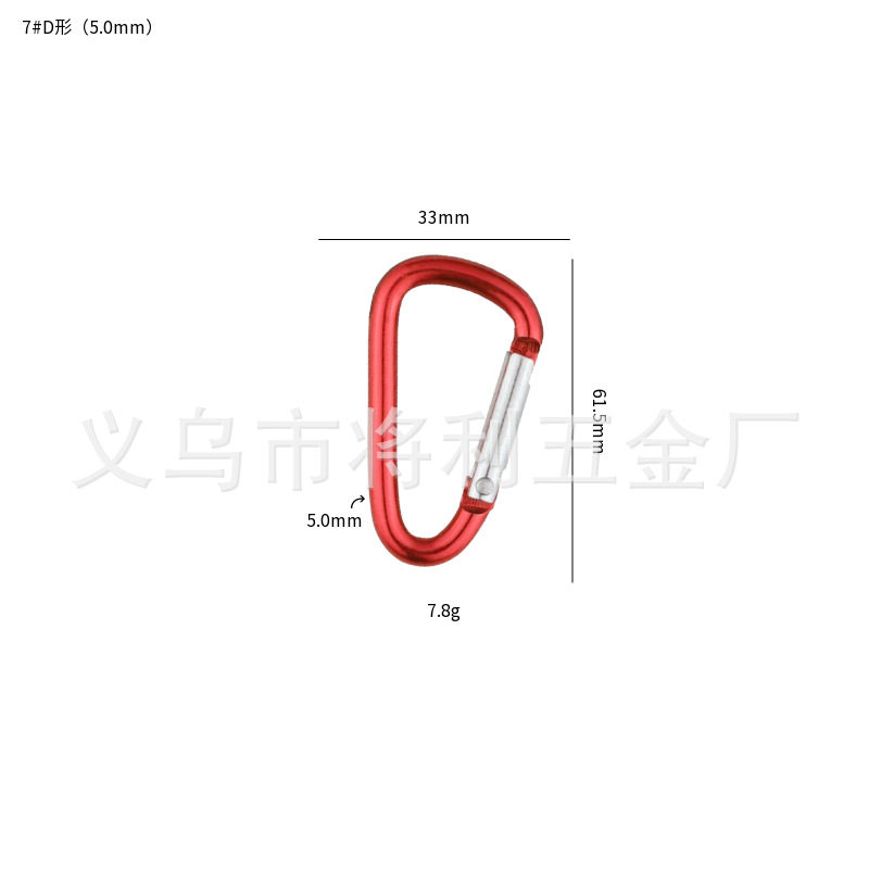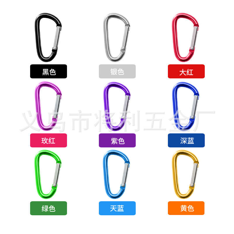 Jiangli 하드웨어 제조업체 직접 공급 No. 7 D 유형 알루미늄 합금 카라비너 대형 전술 야외 장비 색상 빠른 교수형