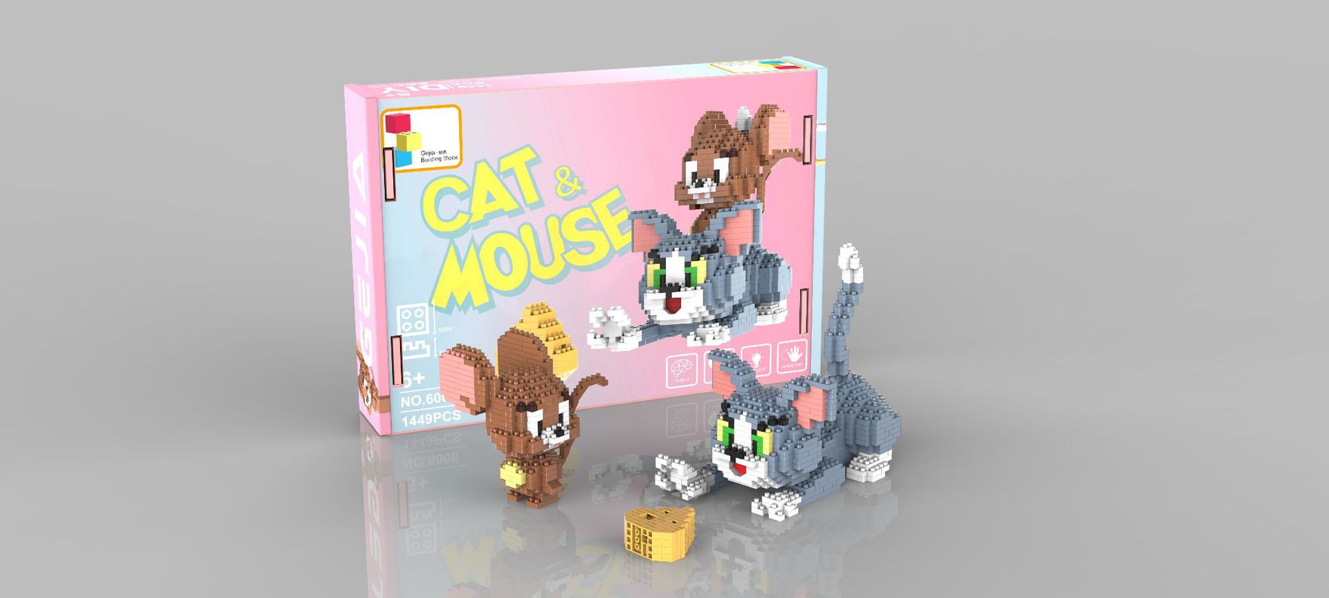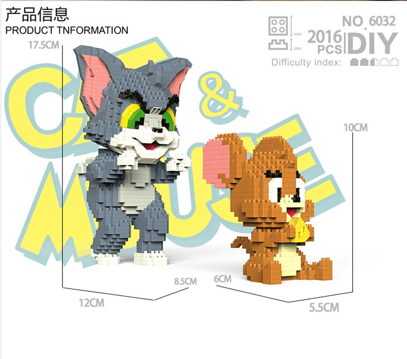 Jijia 마이크로 입자 장난감 모자이크 빌딩 블록 장난감 6006.6032.6038 고양이와 쥐 동물 소매 도매스토어 가기