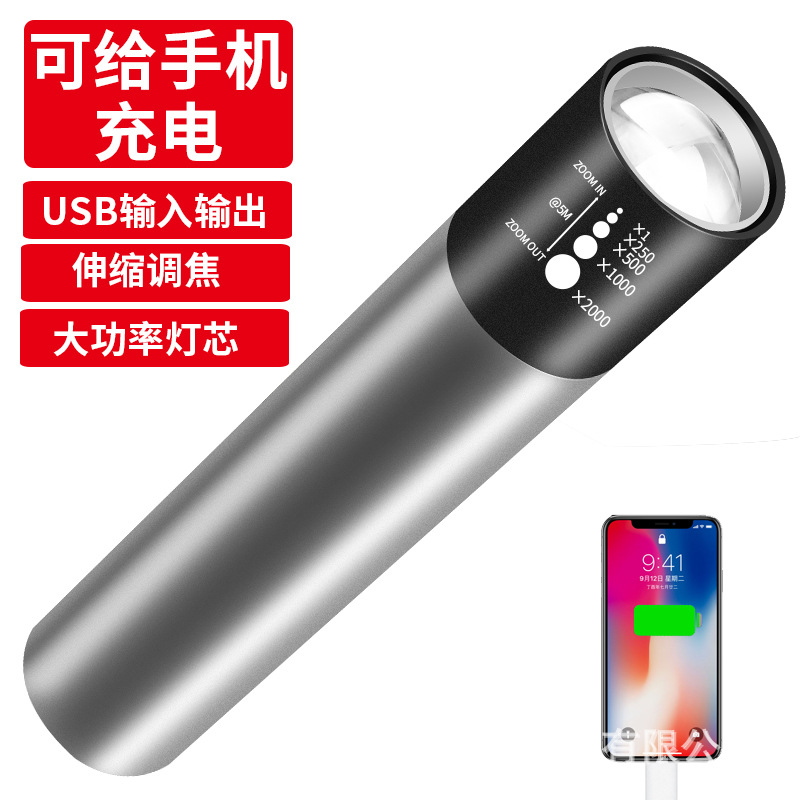 강력한 빛 충전식 손전등 LED 줌 기능 휴대폰 충전 가능 가정용 조명 작업등 야외 탐조 손전등스토어 가기