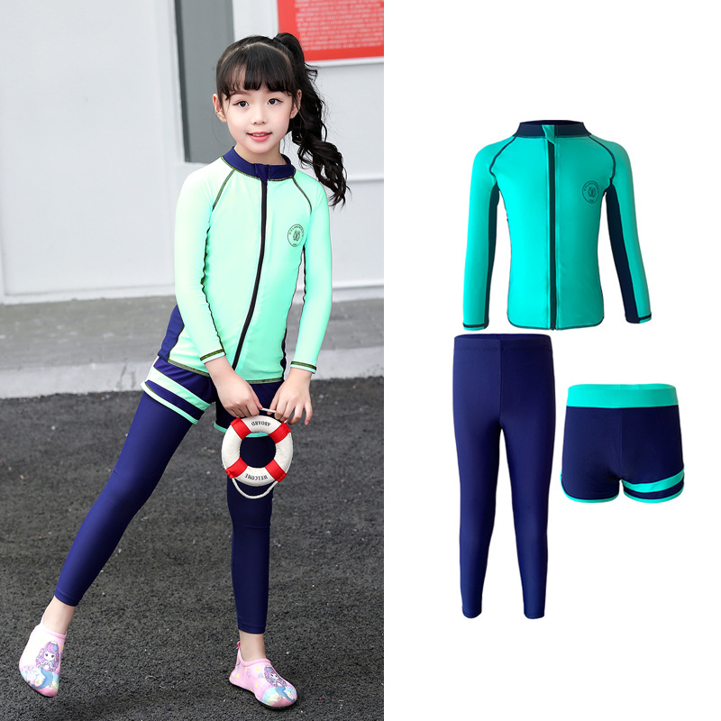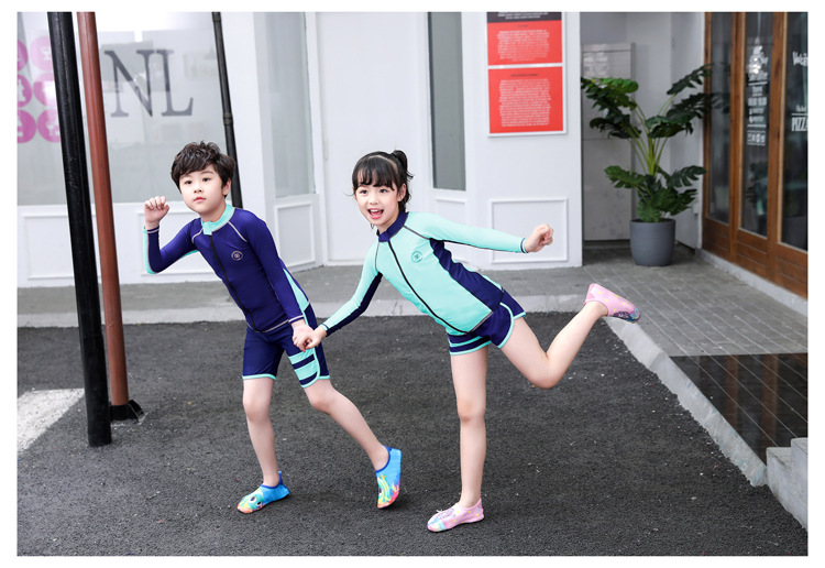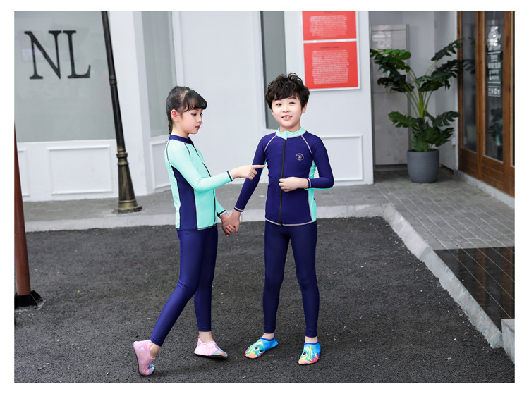 어린이 수영복 분할 태양 보호 중간 및 큰 어린이 수영 세트 아기의 긴 소매 스노클링 세트 소년의 속건 다이빙 세트스토어 가기