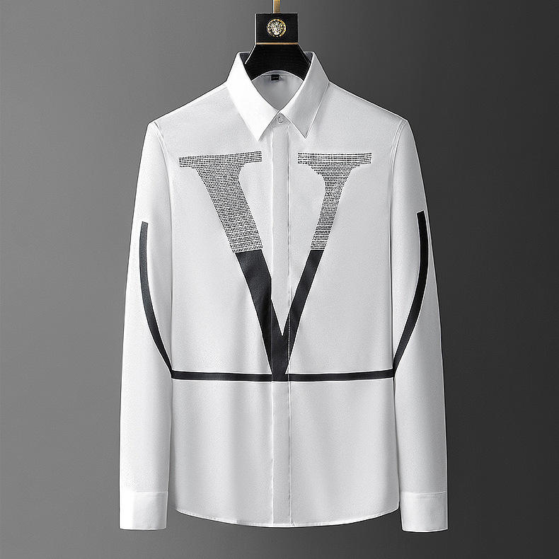 크로스 보더 유럽 스테이션 긴팔 셔츠 남성 트렌드 빅 V 슬림 셔츠 비 다림질 주름 방지 남성 셔츠스토어 가기