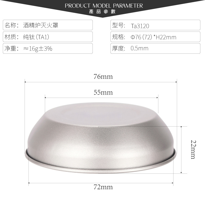 • Ta3120 액세서리 티타늄 알코올 노 소화 커버