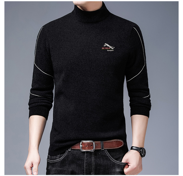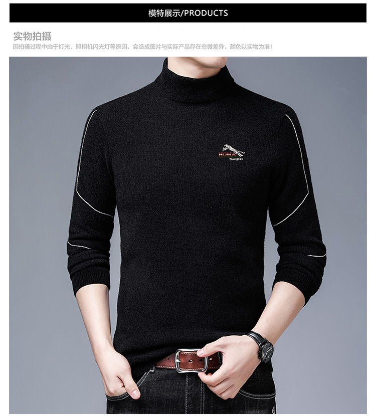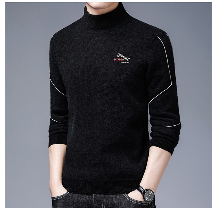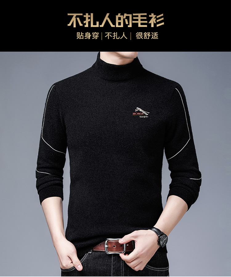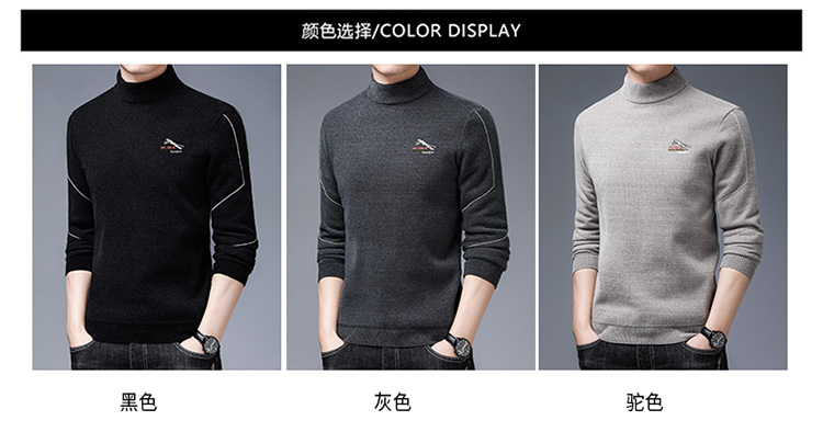 2022 새로운 울 스웨터 남성용 울 기모 두꺼운 가을과 겨울 거북이 목 패션 자수 베이스 셔츠 트렌드스토어 가기